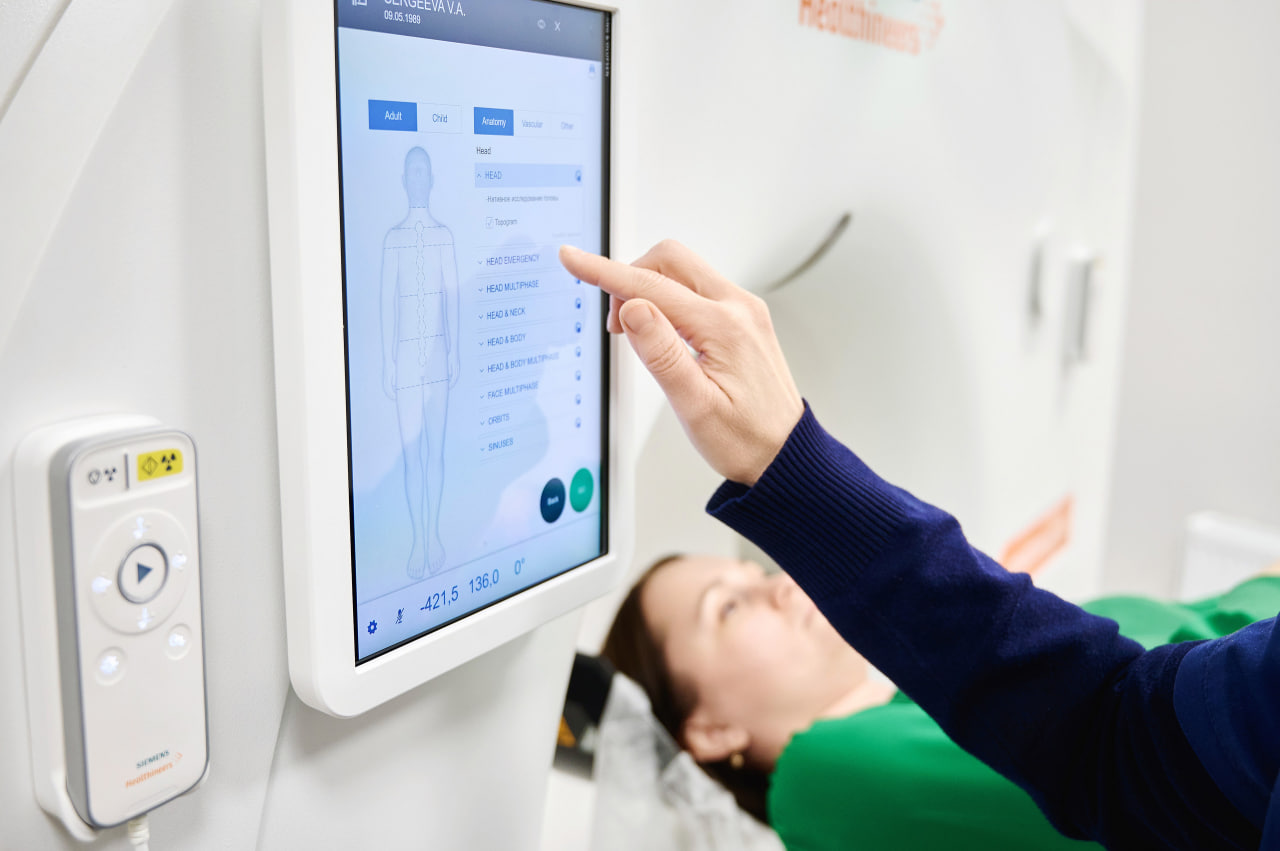 В отделении установлено высокоточное оборудование, которое позволяет быстро и безопасно получить детализированные изображения внутренних органов и систем. Все исследования проводятся с учетом современных требований к радиационной безопасности и с максимальным вниманием к комфорту пациента.