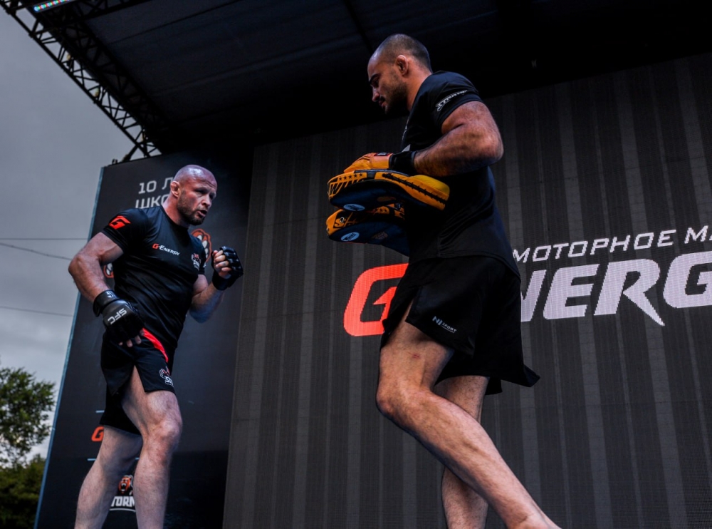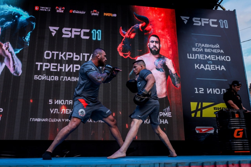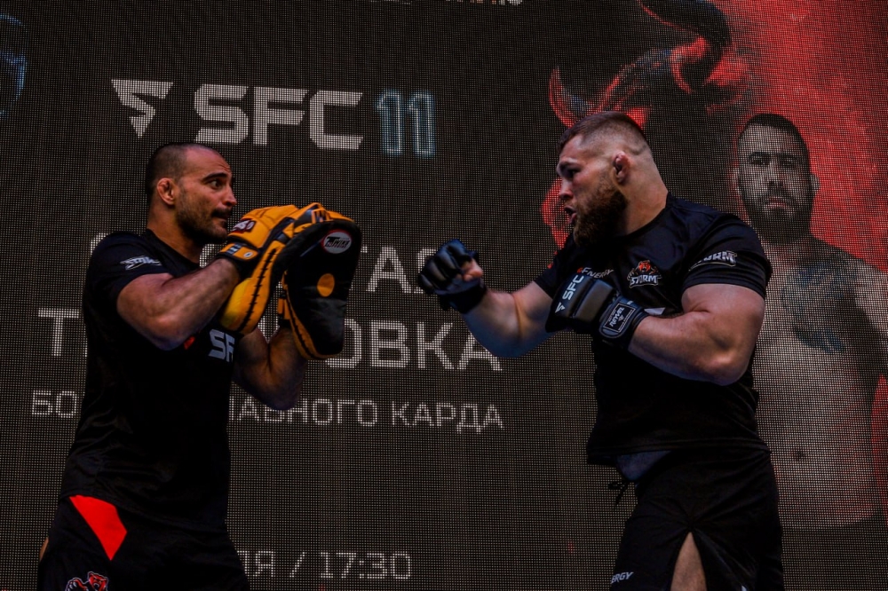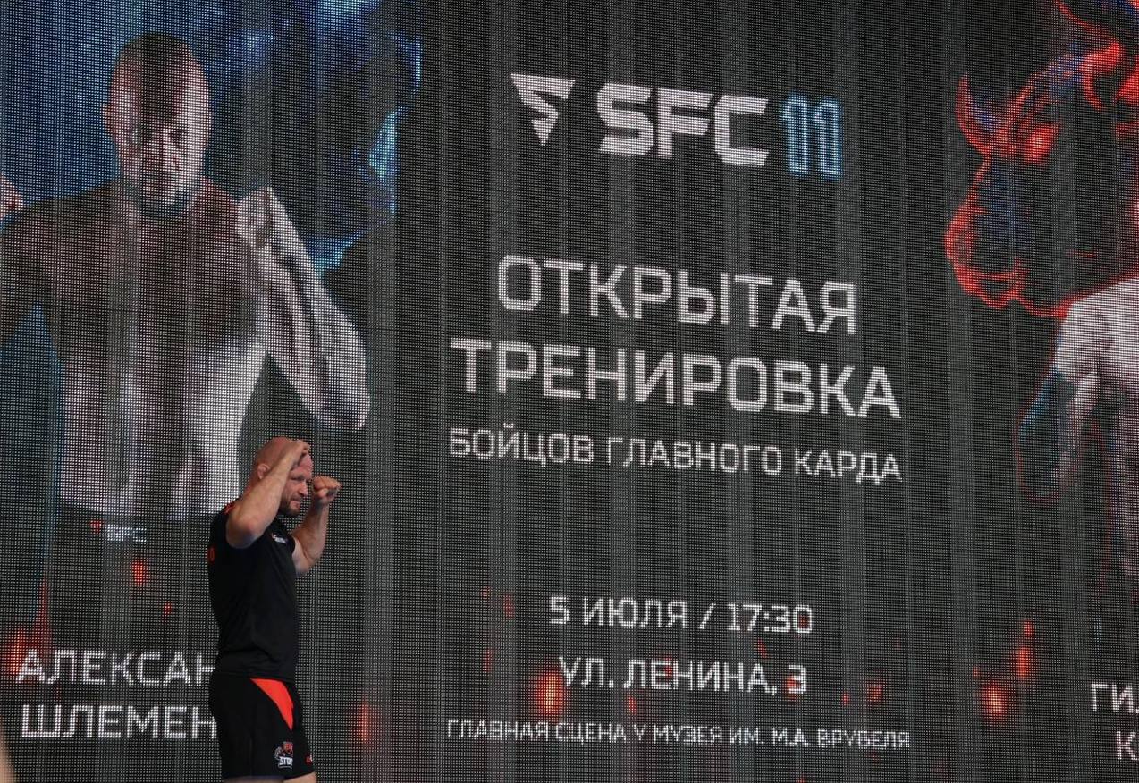 В субботу, 5 июля, на «Пешеходном Любинском» в экстремальных погодных условиях состоялась открытая тренировка представителей команды Александра Шлеменко STORM Shlemenko Fight Team и их соперников. Под проливным дождем спортсмены продемонстрировали свою готовность к турниру SFC 11, который состоится 12 июля в «G-Drive Арене» (12+). В октагон выйдут 13 пар спортсменов.
