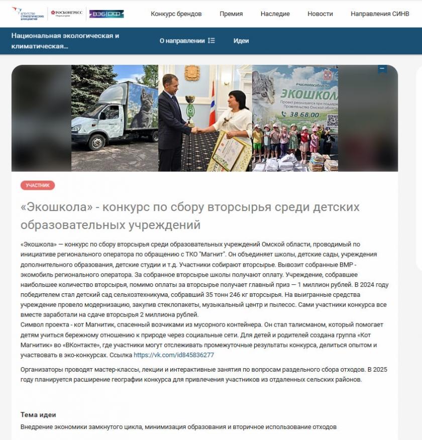 В Москве завершился форум «Сильные идеи для нового времени». Это ежегодное событие, организованное Агентством стратегических инициатив (АСИ), стало площадкой для обсуждения самых перспективных идей и проектов в различных сферах – от цифровизации и предпринимательства до экологии и подготовка кадров будящего. Одним из участников стал омский региональный оператор по общению с твердыми коммунальными отходами (ТКО) «Магнит».