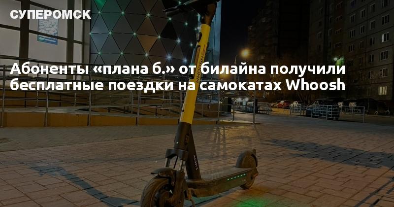 Билайн и сервис аренды самокатов Whoosh объявляют о запуске партнерского проекта, в рамках которого пользователи тарифа «план б.» будут ежемесячно получать 30 бесплатных минут на аренду самокатов и велосипедов Whoosh. Предложение доступно всем абонентам тарифа до конца сентября, при этом воспользоваться бесплатными минутами можно в течение 30 дней с даты активации пакета.