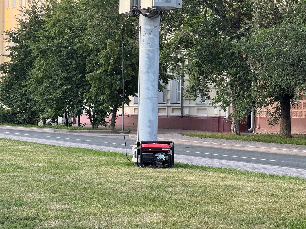 Телекоммуникационное оборудование запитали электрогенератором на одной из центральных улиц Омска.