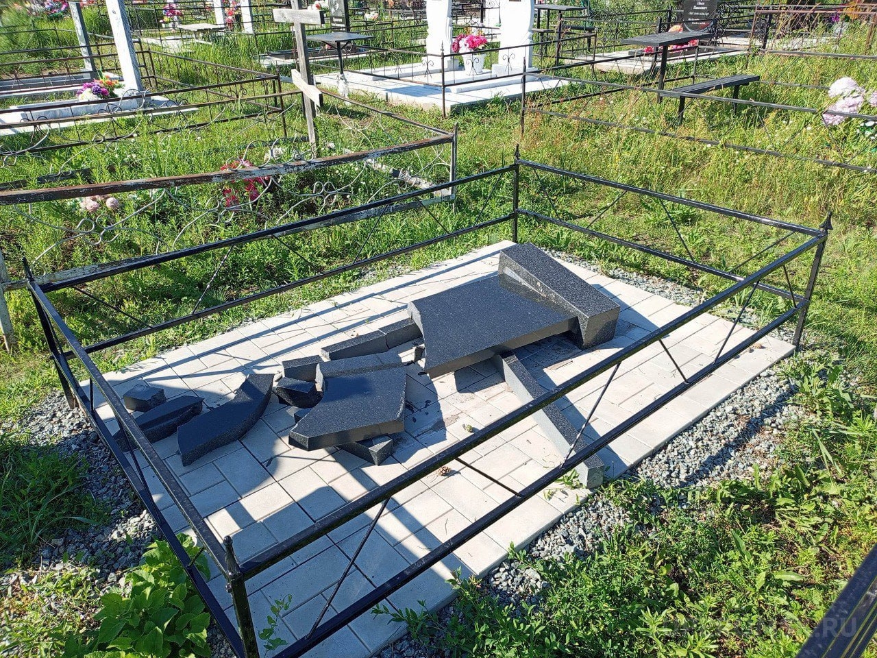 На фото: одно из поврежденных надгробий / Источник: УМВД России по Омской области