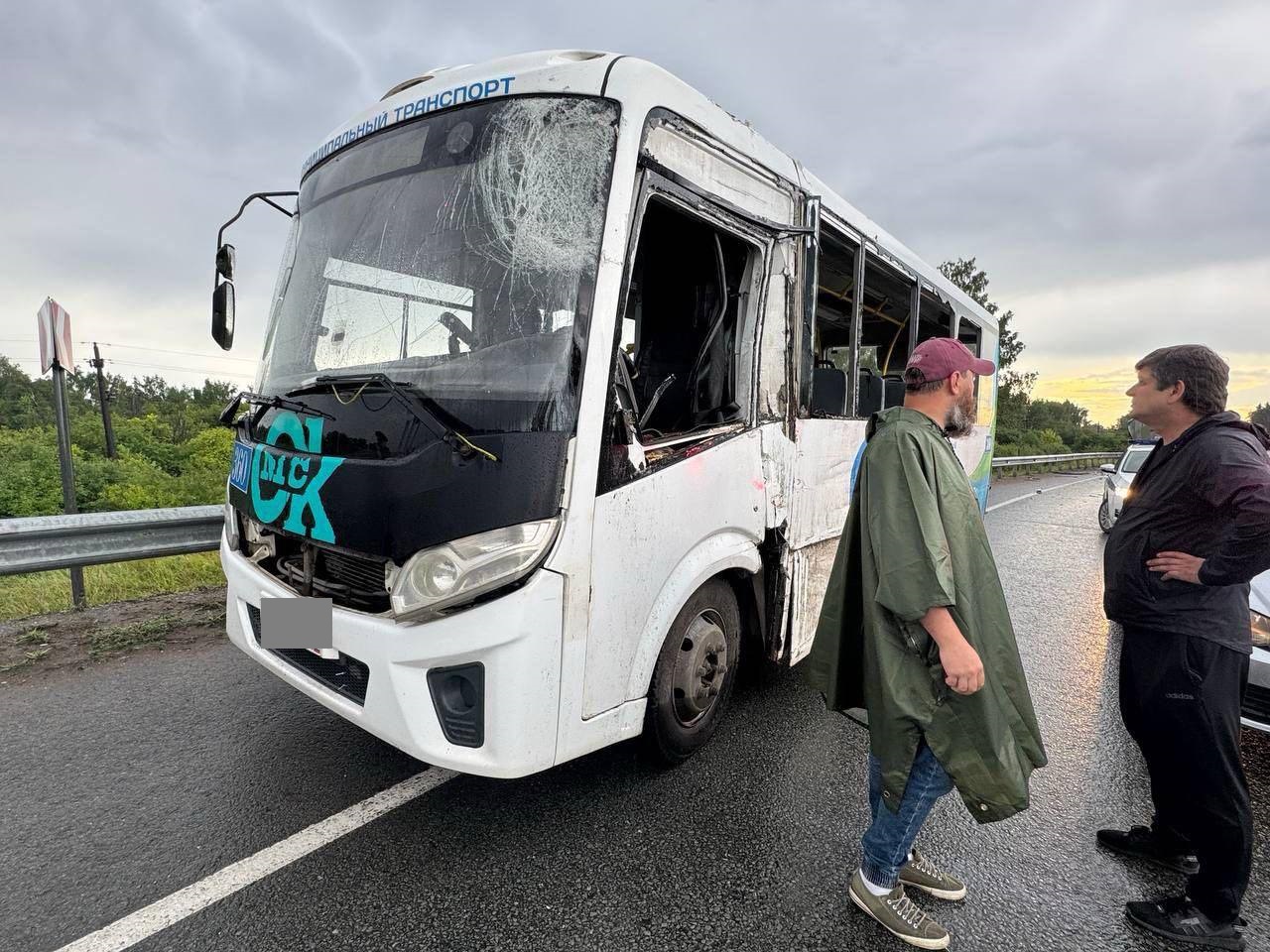 Как видно на фото с места происшествия, у автобуса оказались выбиты все стекла с одной стороны, причем множество мелких осколков засыпали салон. Фура же подмяла отбойник, а ее кабина сильно накренилась в сторону.