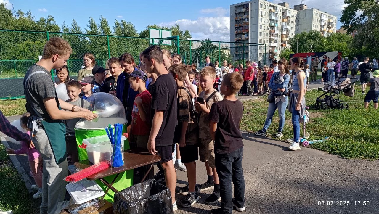 В День Семьи, любви и верности в Омске на стадионе «Текстильщик» прошла концертно-игровая программа, посвященная открытию игрового комплекса, который установлен в рамках реализации проекта «Играя развиваемся» на средства муниципального гранта в номинации «Омск – наш дом». Он стал продолжением начатого в прошлом году обустройства стадиона «Текстильщик».