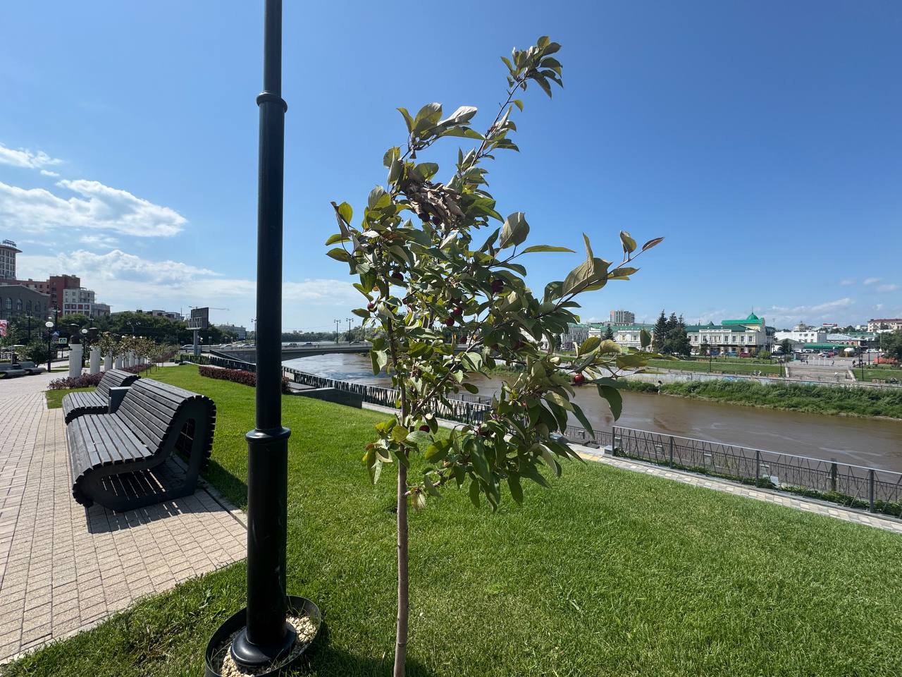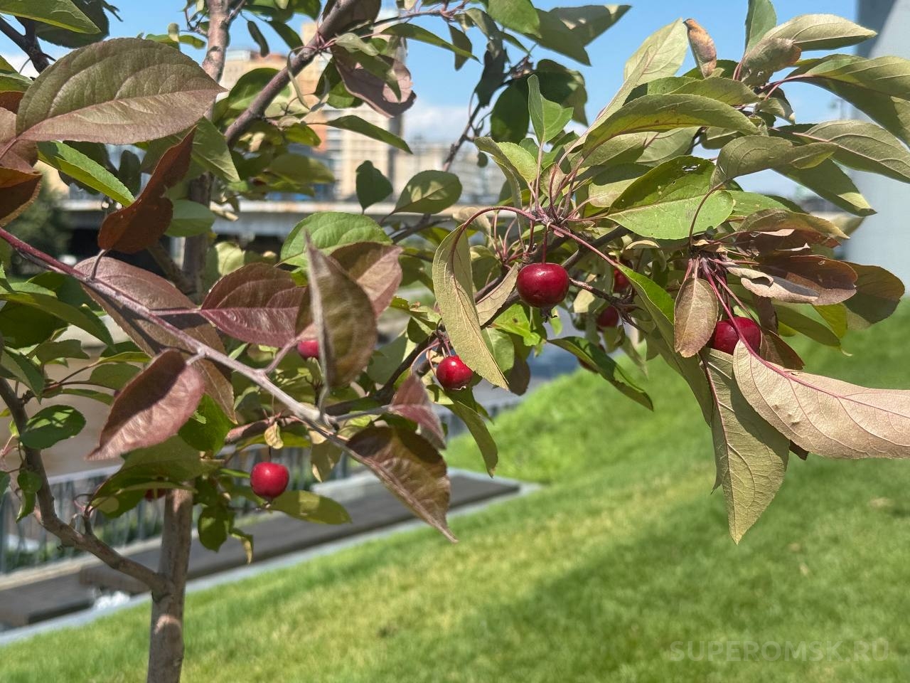 «СуперОмск» обратил внимание, что высаженные на Аллее олимпийцев яблони дали плоды. На деревьях появились красные ранетки, которые выглядят очень аппетитно.