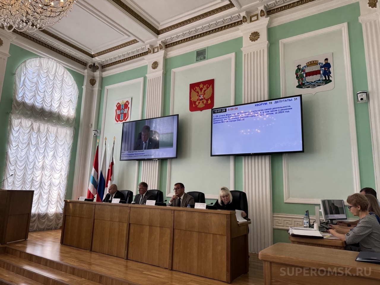 Мэр Омска Шелест выступает с докладом о работе за 2024 год.