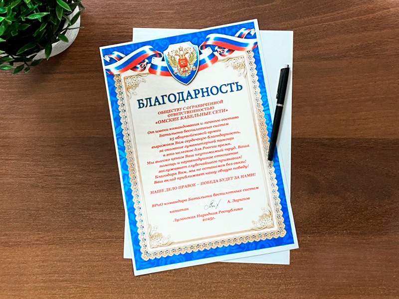 Масштаб этой работы особенно наглядно проявился в 2025 году. С февраля по июль компания организовала и отправила два крупных гуманитарных конвоя на территорию ЛНР и ДНР. Помимо традиционно поставляемых с 2022 года средств борьбы с дронами (мобильные комплексы контроля воздушного пространства, средства подавления и РЭБ), отправленный груз включал в себя: системы спутниковой связи Starlink, тактические аптечки, фонари, системы автономного электропитания, моторизованные средства для форсирования водных преград, комплектующие для ремонта и производства беспилотных систем в полевых условиях. Не забывают в коллективе и тех коллег, кто ушел добровольно на СВО: откликаясь на запросы со стороны сформированных в Омской области частей, направляются комплектующие и материалы для организации оптических сетей связи между подразделениями.