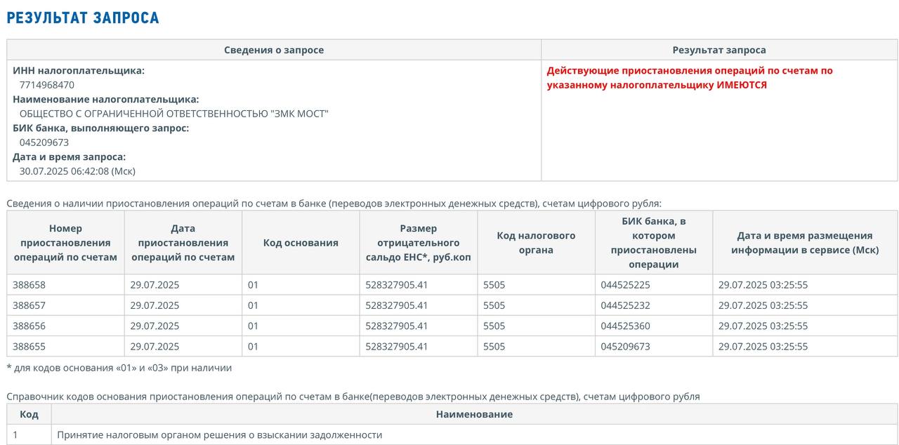 На текущий момент данные о принятии иска в картотеке инстанции не отражены, неизвестна также точная сумма задолженности, ставшей основанием для направления заявления. При этом из ответа налоговых органов на запрос «СуперОмска» следует, что на 4 заблокированных счетах компании, по состоянию на 29 июля 2025 года, сложилось отрицательное сальдо в сумме свыше 528,3 миллиона рублей. Для сравнения, в первой половине текущего месяца речь шла о немногим больше 446,2 миллиона рублей.