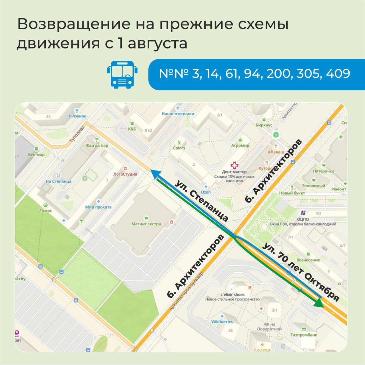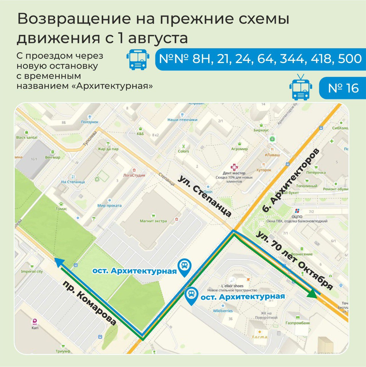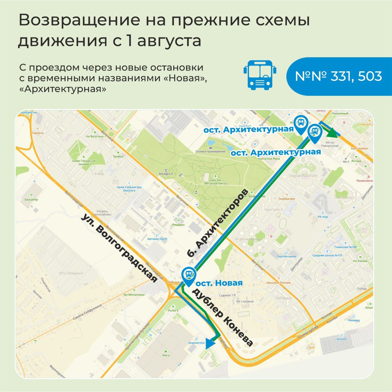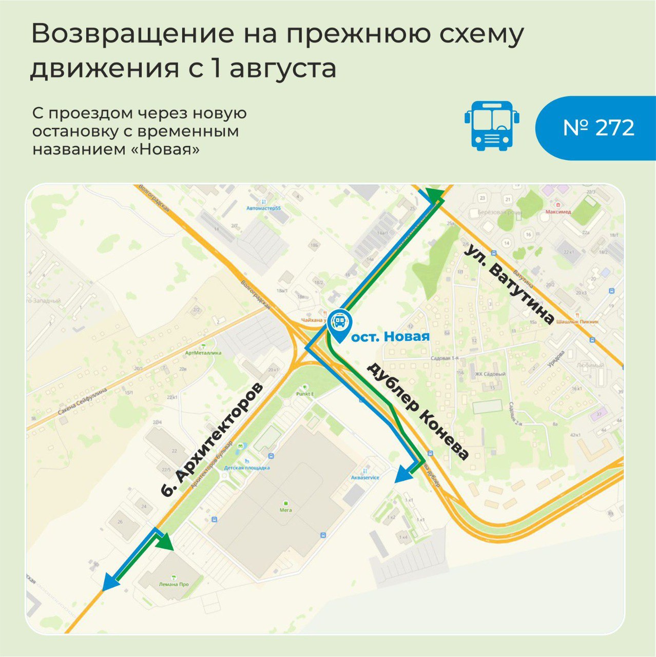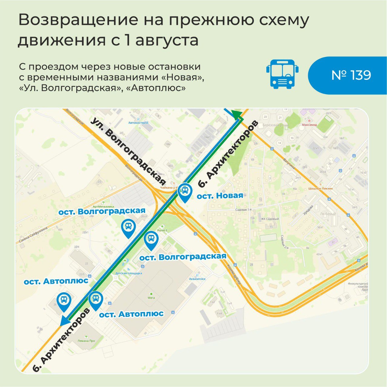 В городской администрации подоготовили новые схемы движения (на фото ниже), где обозначены в том числе новые остановки общественного транспорта, оборудованные в процессе реконструкции. Всего их четыре: «Архитектурная», «Новая», «Улица Волгоградская» и «Автоплюс».