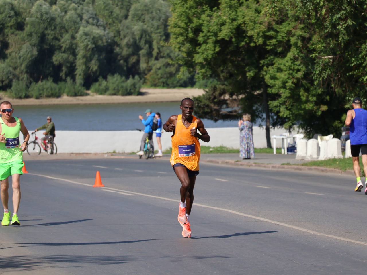 Среди мужчин первым идет Бирген Джоффри Кипротич, вторым – Андрей Янович из города Апатиты. А вот победитель Сибирского международного марафона прошлого года Джон Ротич Митэй пока бежит третьим.