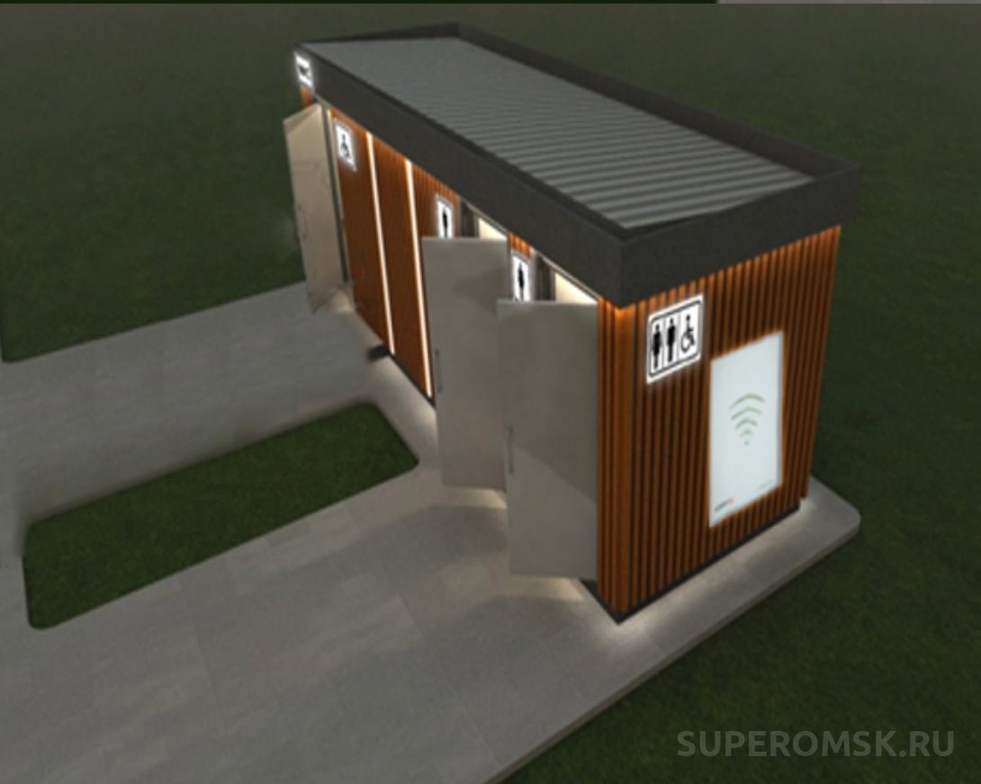 Напомним, «дизайнерский» общественный туалет представляет собой группу блок-контейнеров, облицованных деревянным брусом, разделенных на три кабинки (для мужчин, женщин и маломобильных граждан).