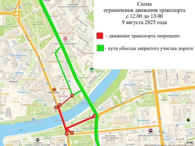 Мэрия Омска предупредила в пятницу, 8 августа 2025 года, что из-за мероприятий ко Дню физкультурника в центре города временно ограничат движение транспорта в субботу, 9 августа 2025 года.