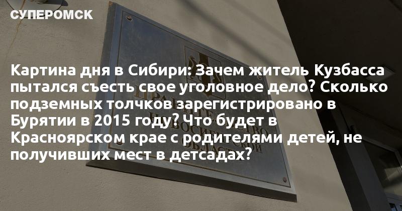 Картина дня в Сибири: Зачем житель Кузбасса пытался съесть свое уголовное дело? Сколько подземных толчков зарегистрировано в Бурятии в 2015 году? Что будет в Красноярском крае с родителями детей, не получивших мест в детсадах?