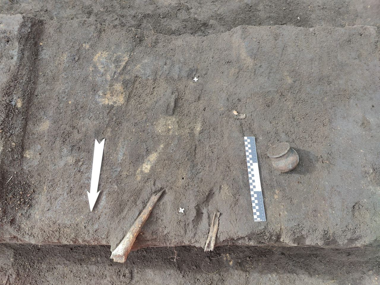 Археологи нашли бронзовые и костяные наконечники стрел, два керамических сосуда с орнаментом, а также элементы конской упряжи, пряжки, железное кольцо и роговые пластины от древнего доспеха.