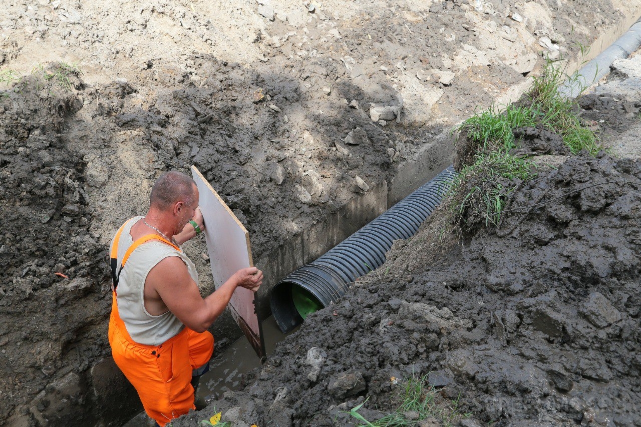 На конец августа также намечена укладка трубы в рамках реконструкции закрытого участка ливневой канализации по улице Муромцева с дальнейшим выходом на земляные работы.