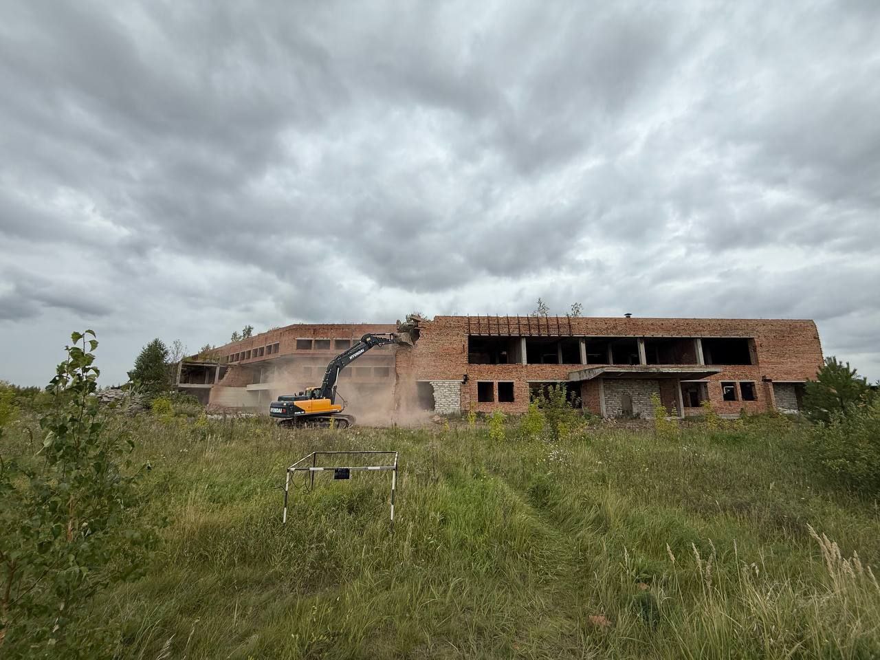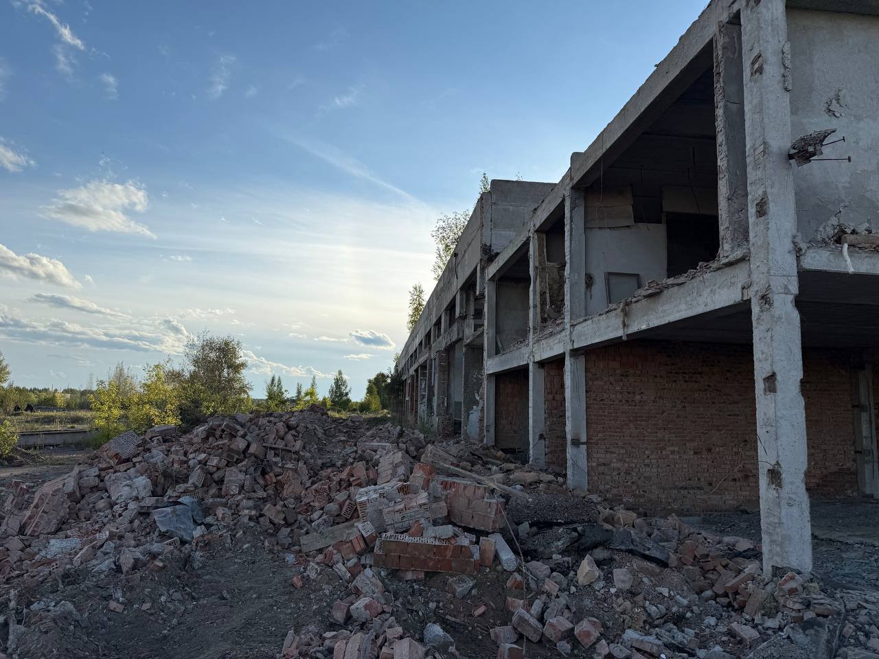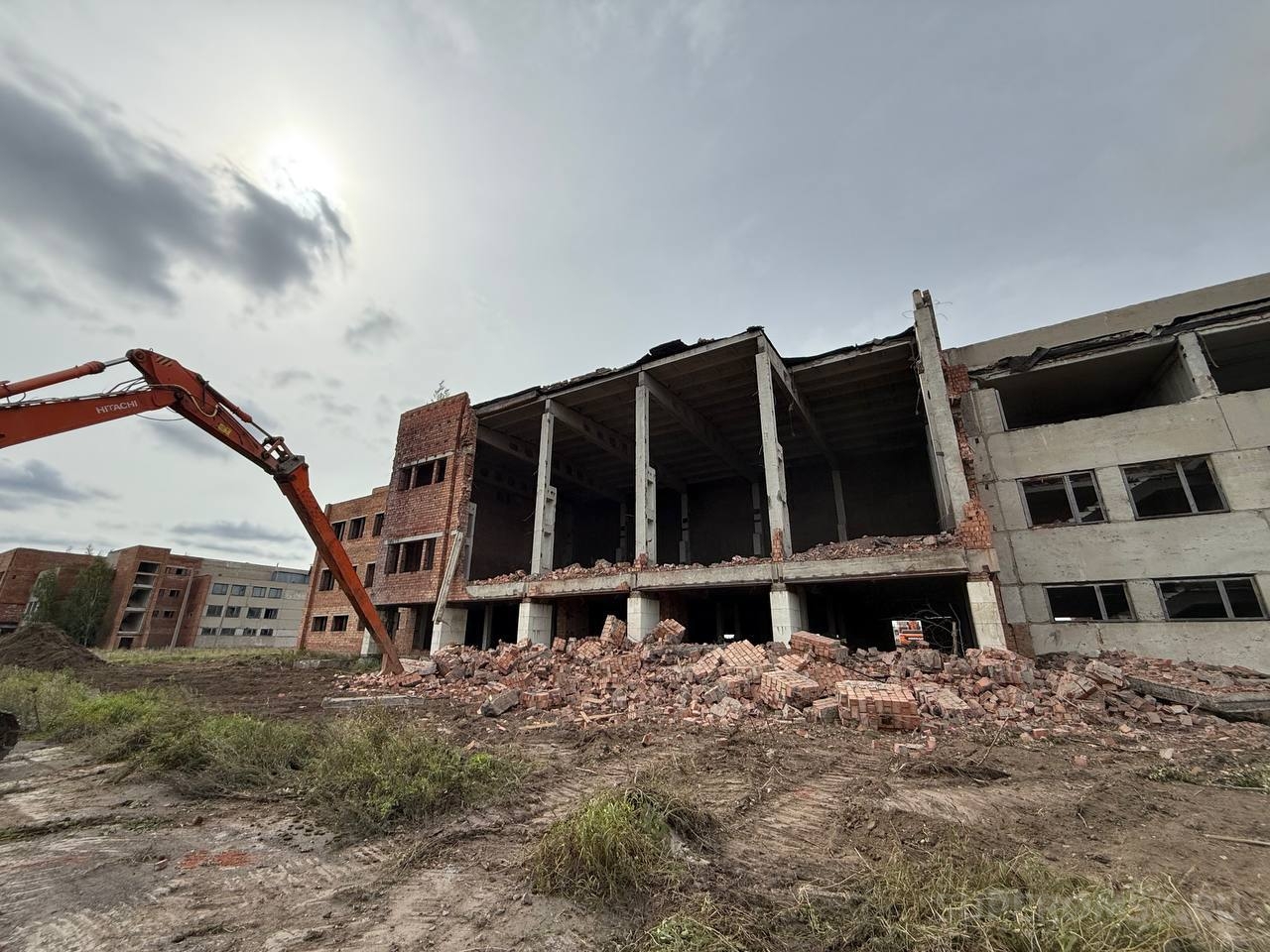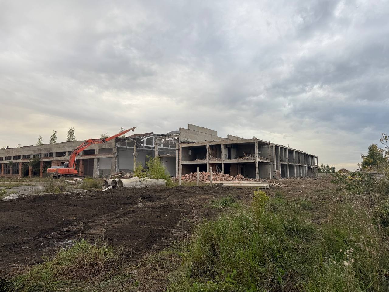 Как видно на фото, пришедшие в негодность бетонные и кирпичные строения, в которых так и не появились окна, сносит специальная техника.