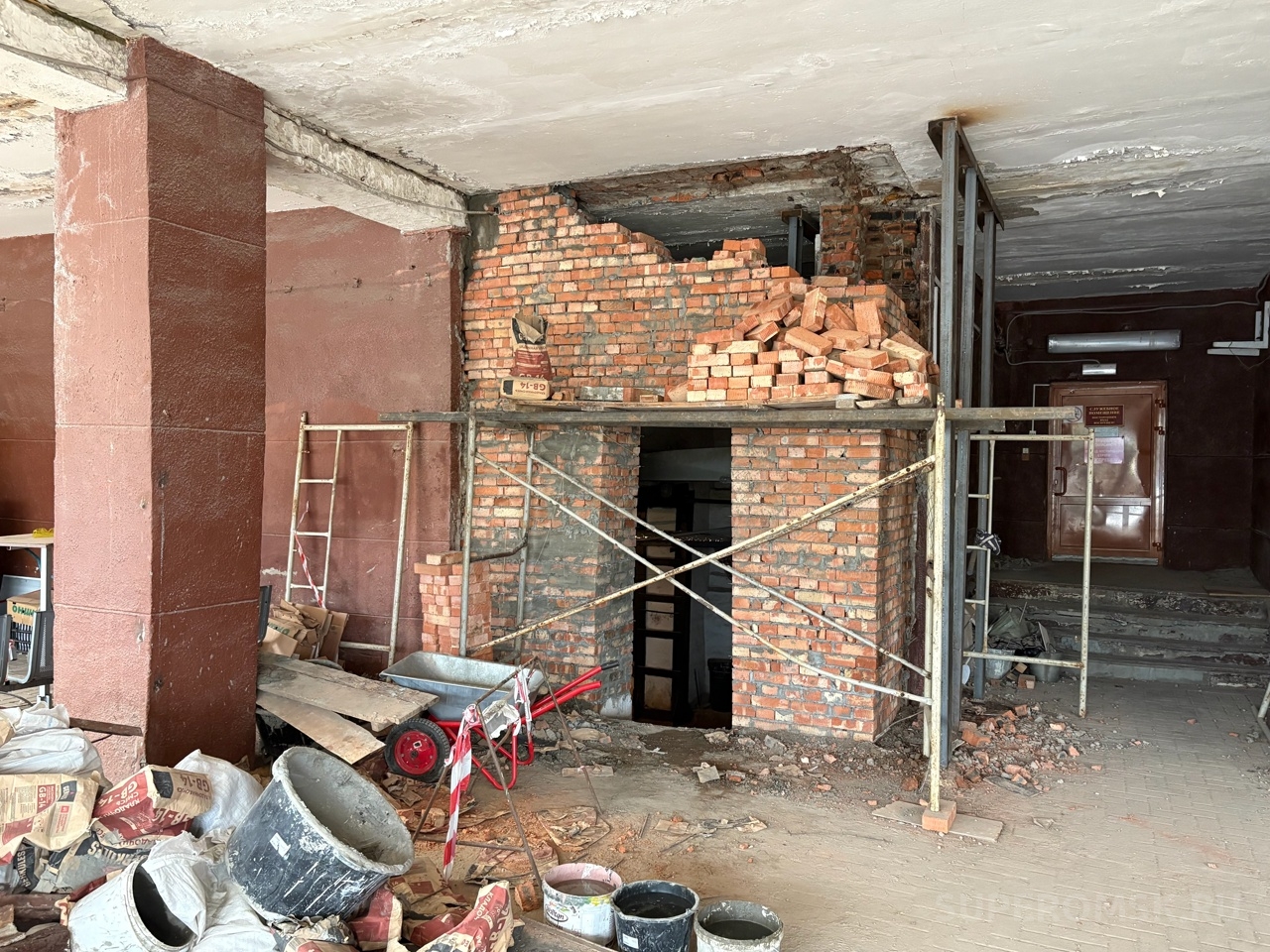 На фото: ремонт стены в здании автовокзала / Источник фото: АО «Омскоблавтотранс»