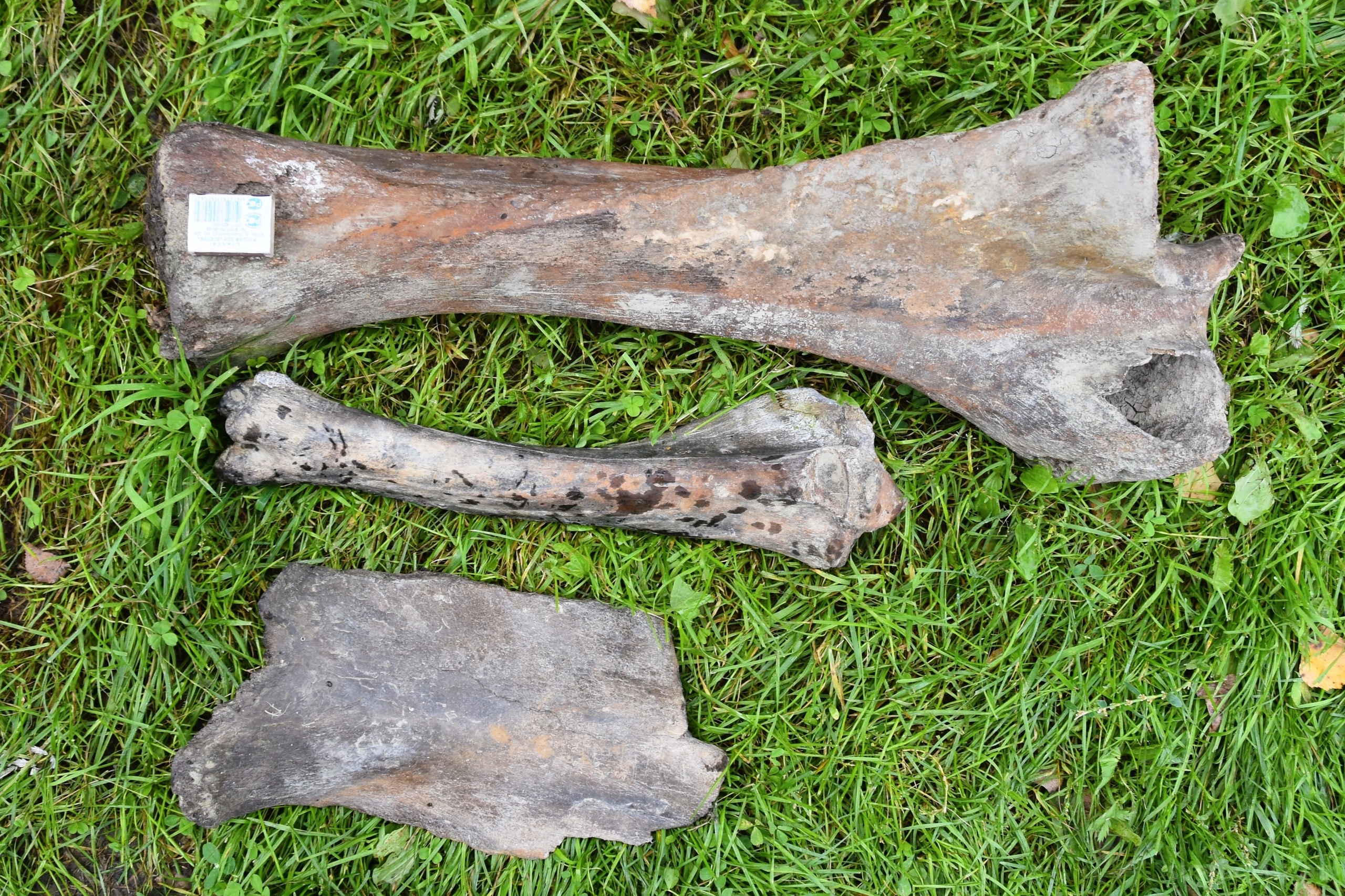 Судя по фото, в общей сложности рыбак добыл три фрагмента кости, причем один из них не цельный. Самая крупная из них, по всей видимости, бедренная, по оценке автора, вполне сопоставима по размерам с человеческой, однако по толщине явно ее превосходит.
