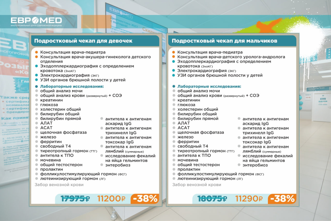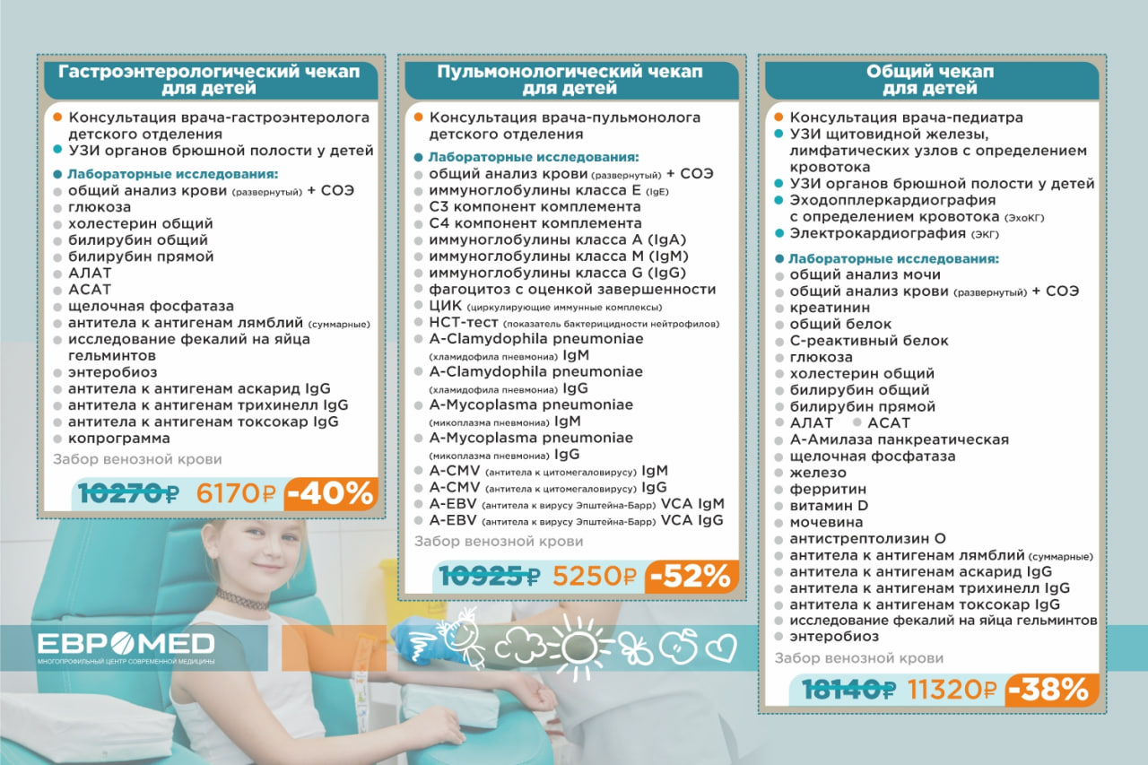 Детские чекапы появились в «Евромеде» только в этом году, но уже стали популярны. Из детских программ наиболее востребованы гастроэнтерологический и пульмонологический чекапы, общий чекап, подростковые чекапы для мальчиков и девочек.