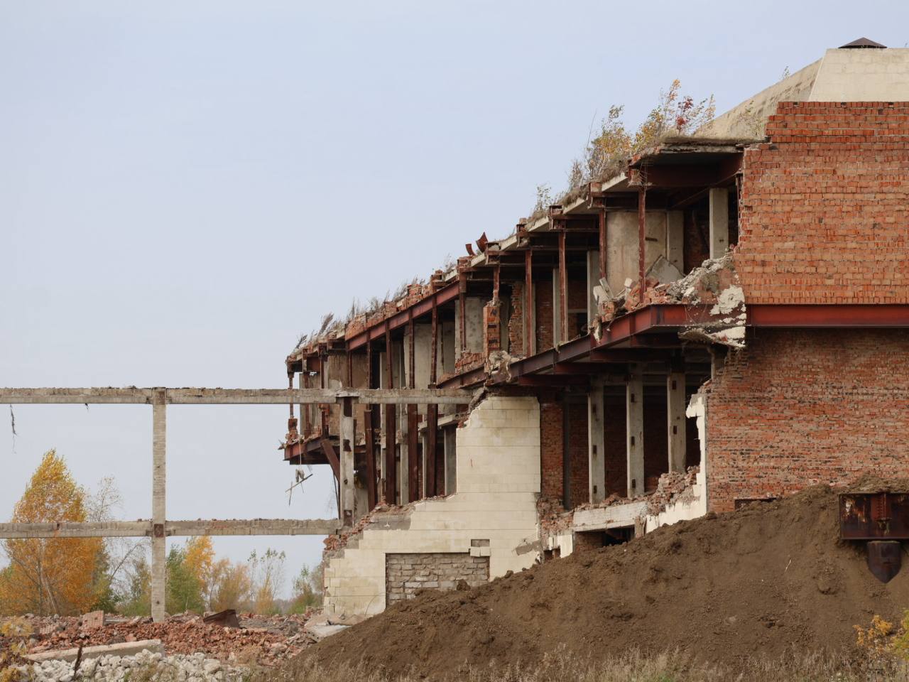 Уже разобран один из корпусов кирпичного здания, которое так и не дождалось своей эксплуатации и со временем пришло в негодность.