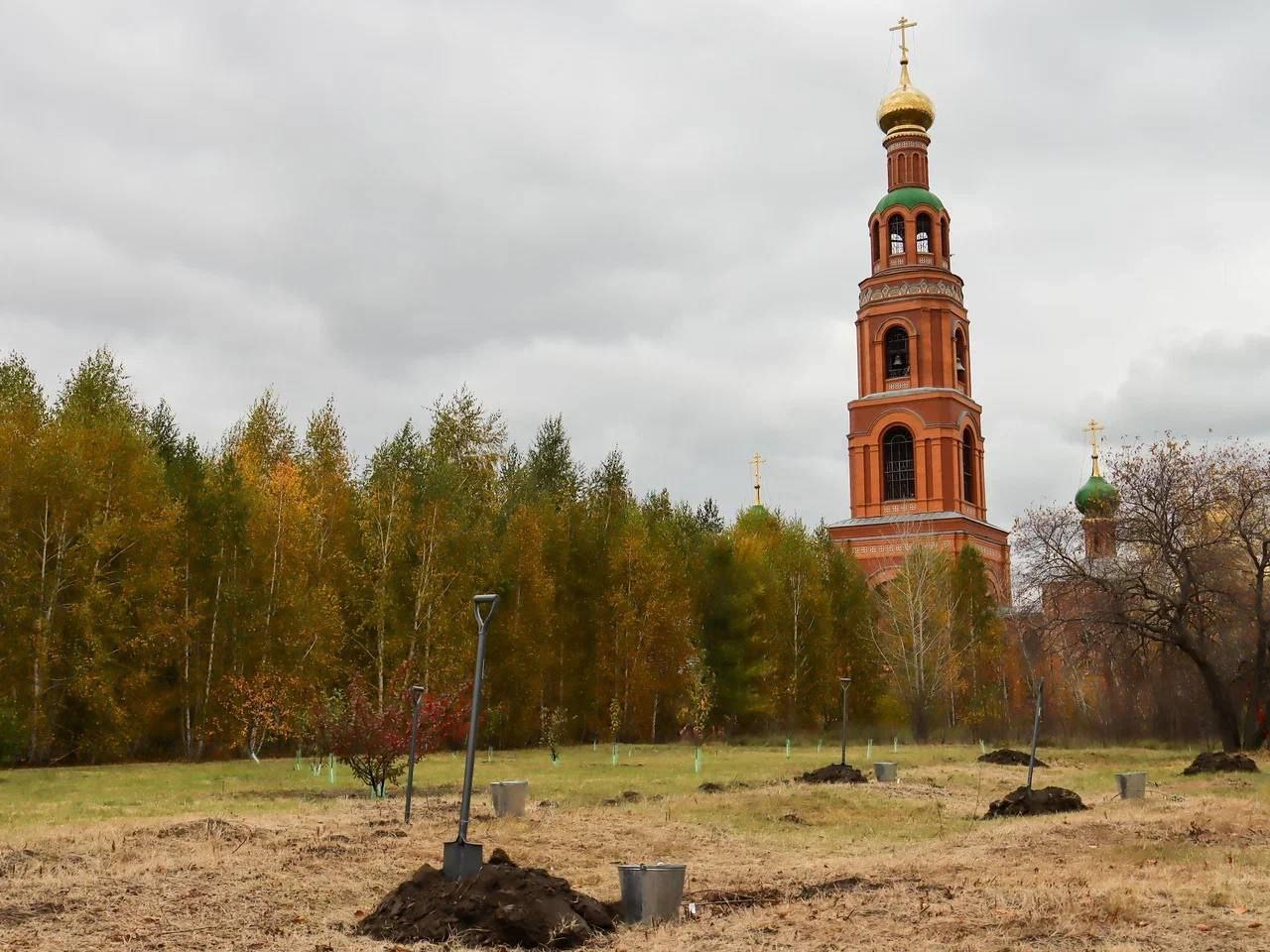 Сад дружбы и духовного единства Омской области и Минской области заложен прошлой осенью посадкой 33 саженцев белорусских яблонь. Сегодня совместная закладка сада продолжилась высадкой 33 саженцев облепихи – по количеству куполов в храмовом комплексе Ачаирского монастыря.