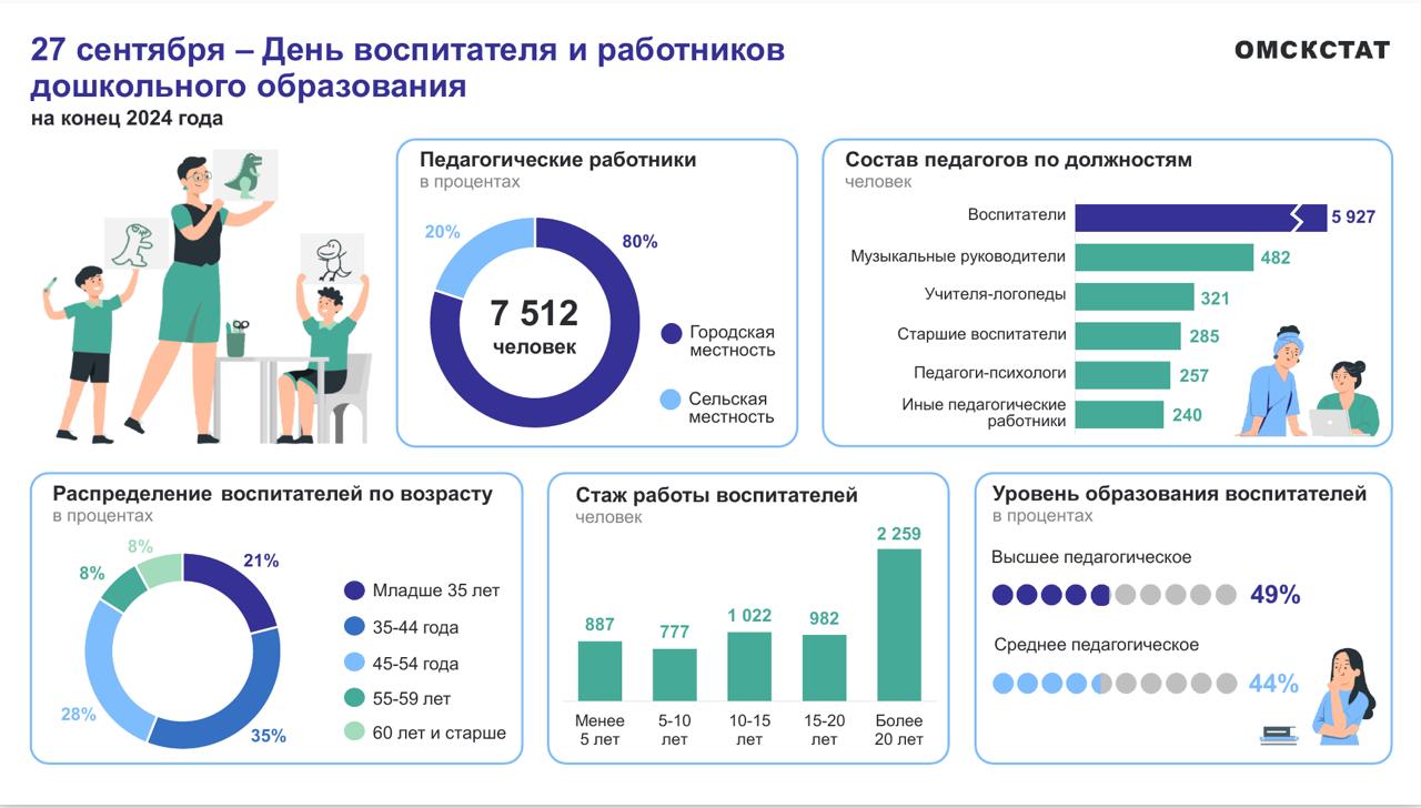 В преддверии Дня воспитателя, который отмечается 27 сентября, Омскстат предоставил статистику о работниках дошкольного образования.