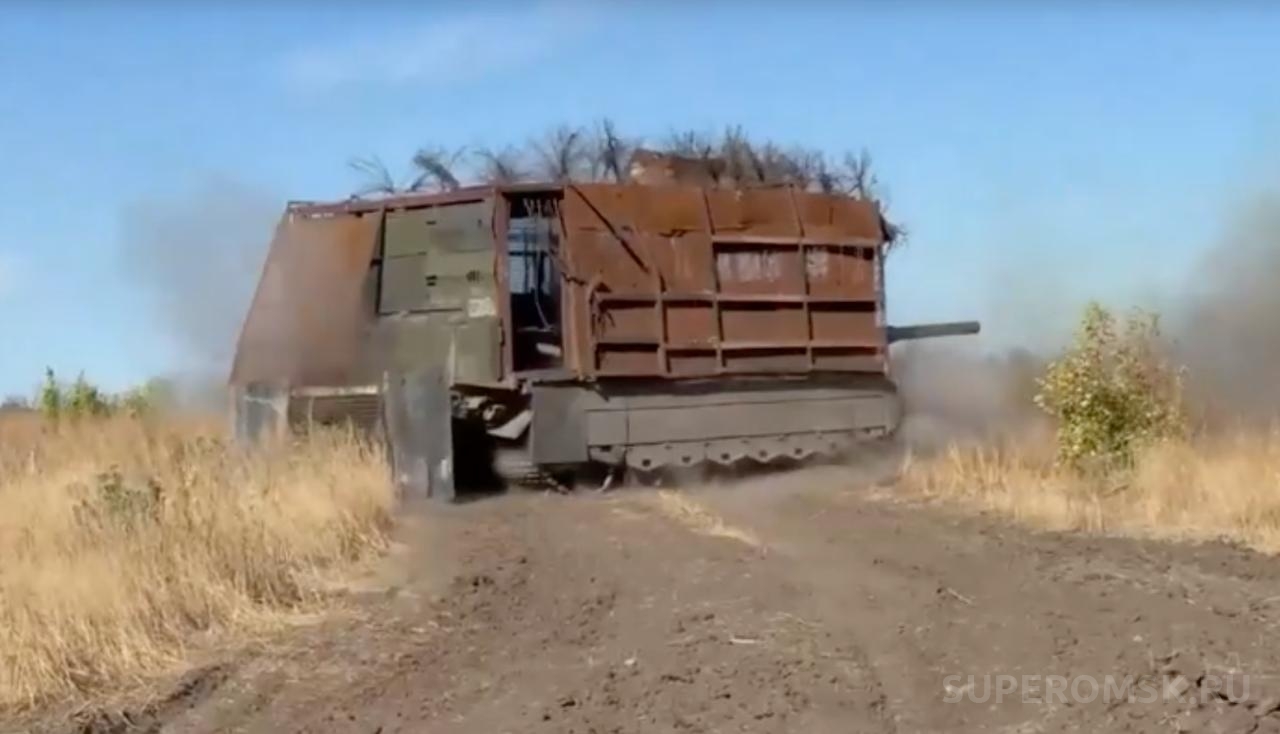 На кадрах Минобороны продемонстрирована металлическая защита на танке, которая помогает ему сохранять целостность и отражать удары противника. «Авторский» обвес представляет из себя металлический короб поверх заводской защиты.