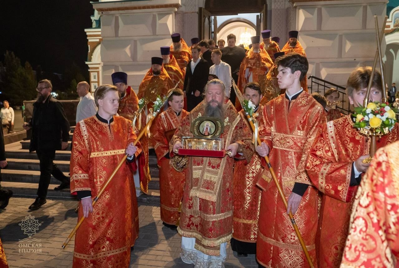 Омская епархия сообщила в пятницу, 26 сентября 2025 года, что в ночь с 25 на 26 сентября, в праздник Воскресения словущего, в Успенском кафедральном соборе была совершена Божественная литургия и состоялись проводы мощей святителя Тихона, патриарха всероссийского.