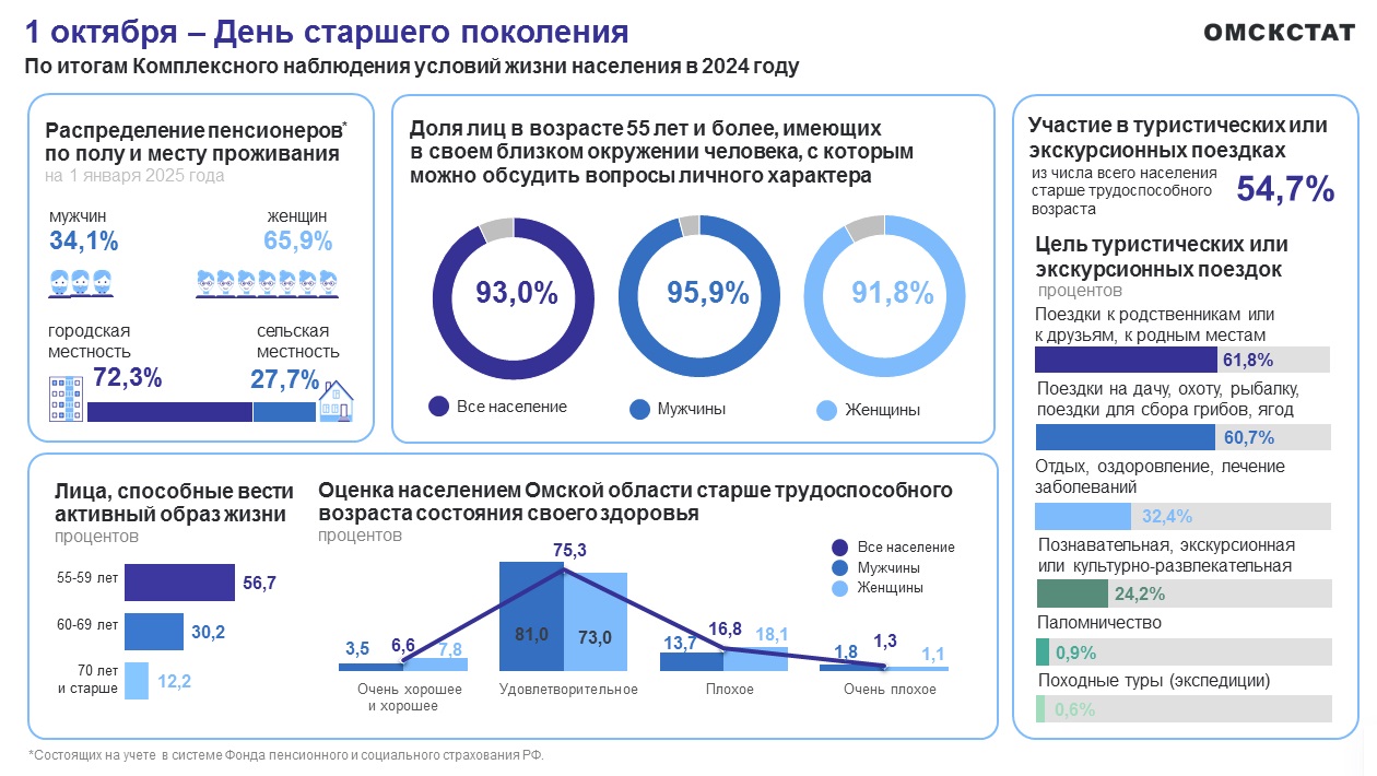 Омские статистики ко Дню пожилого человека, который отмечается в среду, 1 октября 2025 года, рассказали об омских пенсионерах, основываясь на данных за 2024 год.