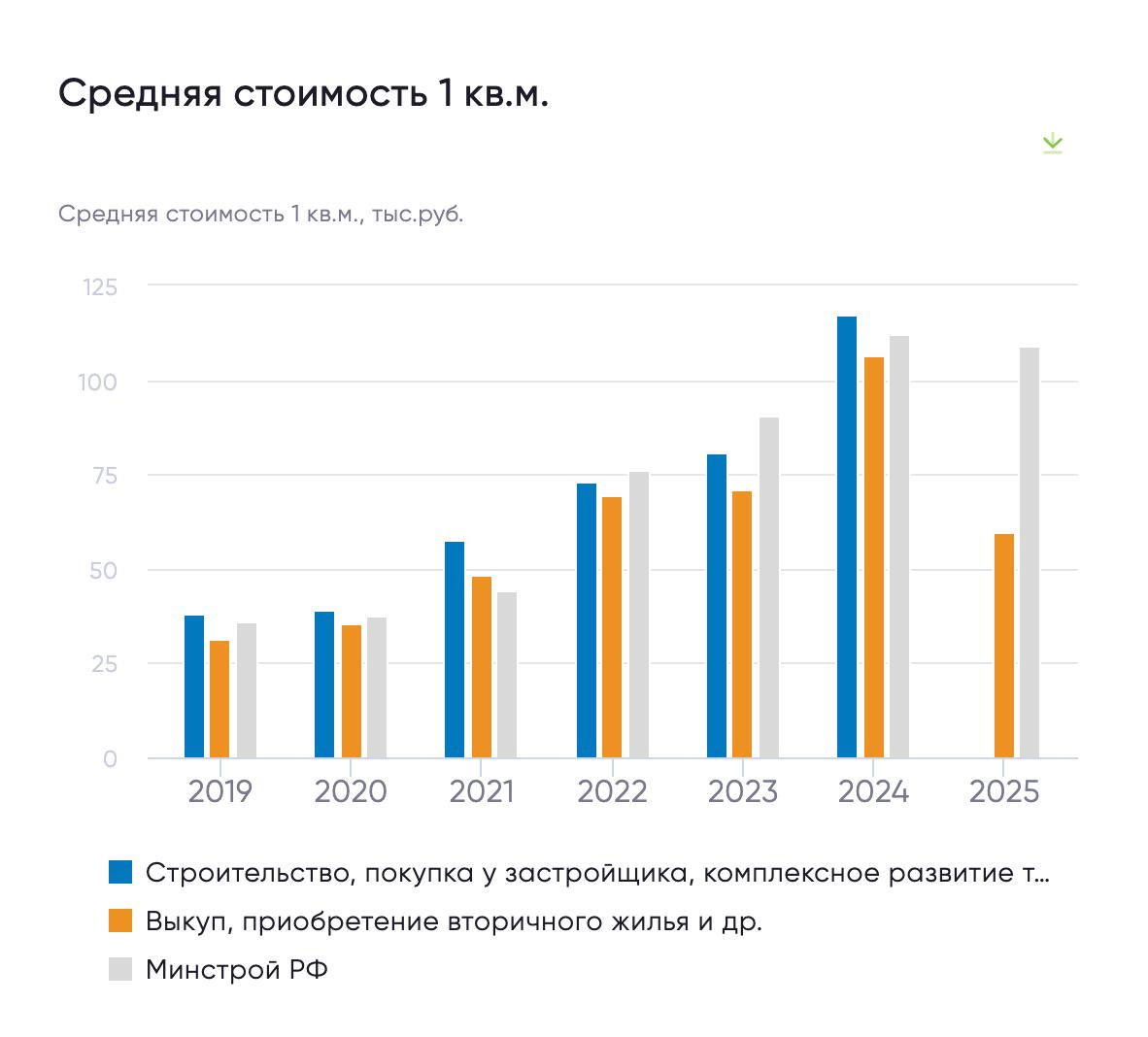 При этом уже за 2025 год данные по квартирам в новостройке полностью отсутствуют, а средняя стоимость жилья на вторичном рынке снизилась до порядка 60 тысяч рублей за «квадрат», то есть парктически вдвое.