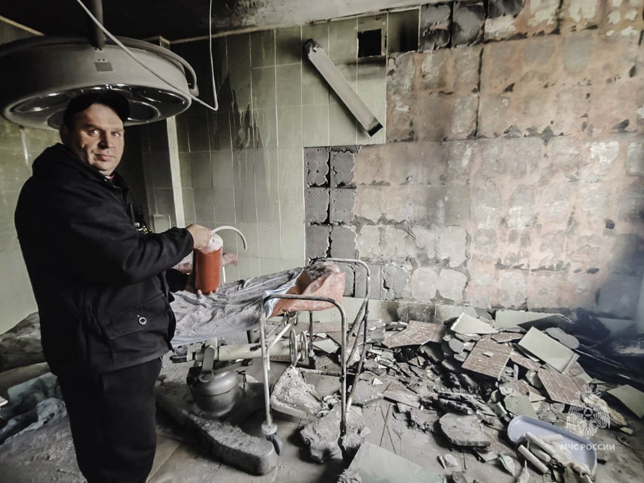 Вскоре на место происшествия прибыли сотрудники МЧС, которые убедились, что огонь потушен, тления нет. В результате пожара в кабинете медсанчасти повреждена бактерицидная лампа на площади в один квадрат, закопчены стены перевязочной.