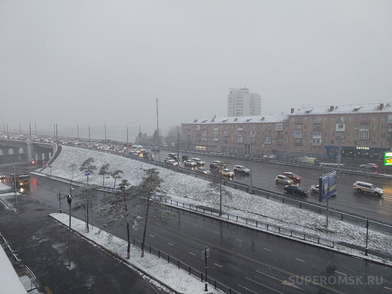 Ночь и утро пятницы, 10 октября 2025 года, принесли в Омск признак скорой зимы – в городе пошел снегопад. Пока за окном держится пограничная температура около ноля градусов, снег уже успел кое-где засыпать землю, лег на крыши домов, автомобилей и продолжает падать.