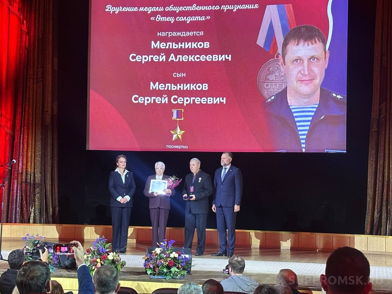 Так, награду из рук заместителя министра обороны РФ, председателя Фонда «Защитники Отечества» Анны Цивилевой получил омич Сергей Мельников, отец Сергея Мельникова, погибшего в ходе проведения специальной военной операции.