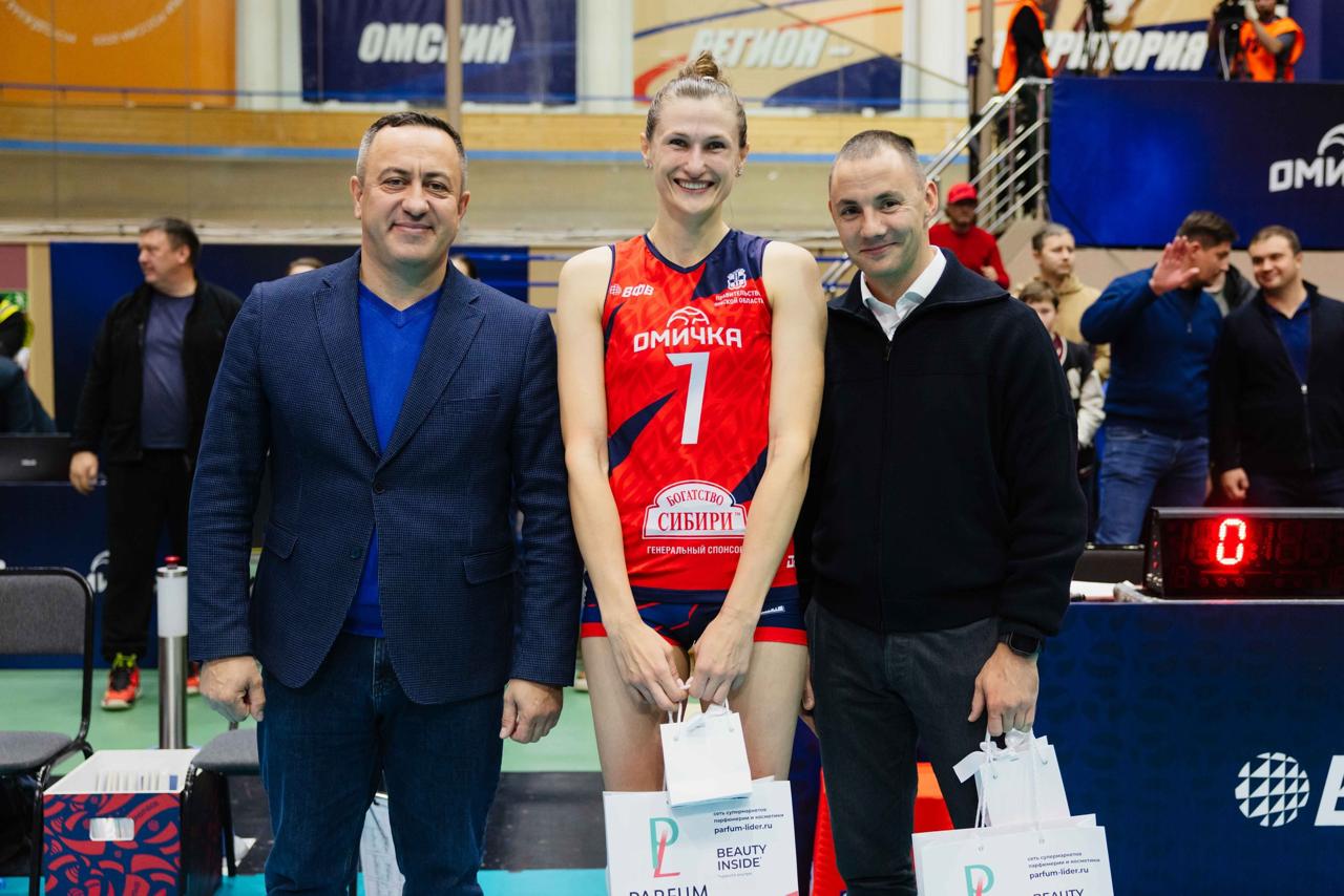 Лучшим за игру от «Ленинградки» Анастасия Гарелик предпочла выходу другие дела, что заставило выглядеть награждающих весьма странно, так как их – двое. На официальном фото видно, как министр спорта Омской области Алексей Ленберг стоит с «нереализованным» пакетом в руках.