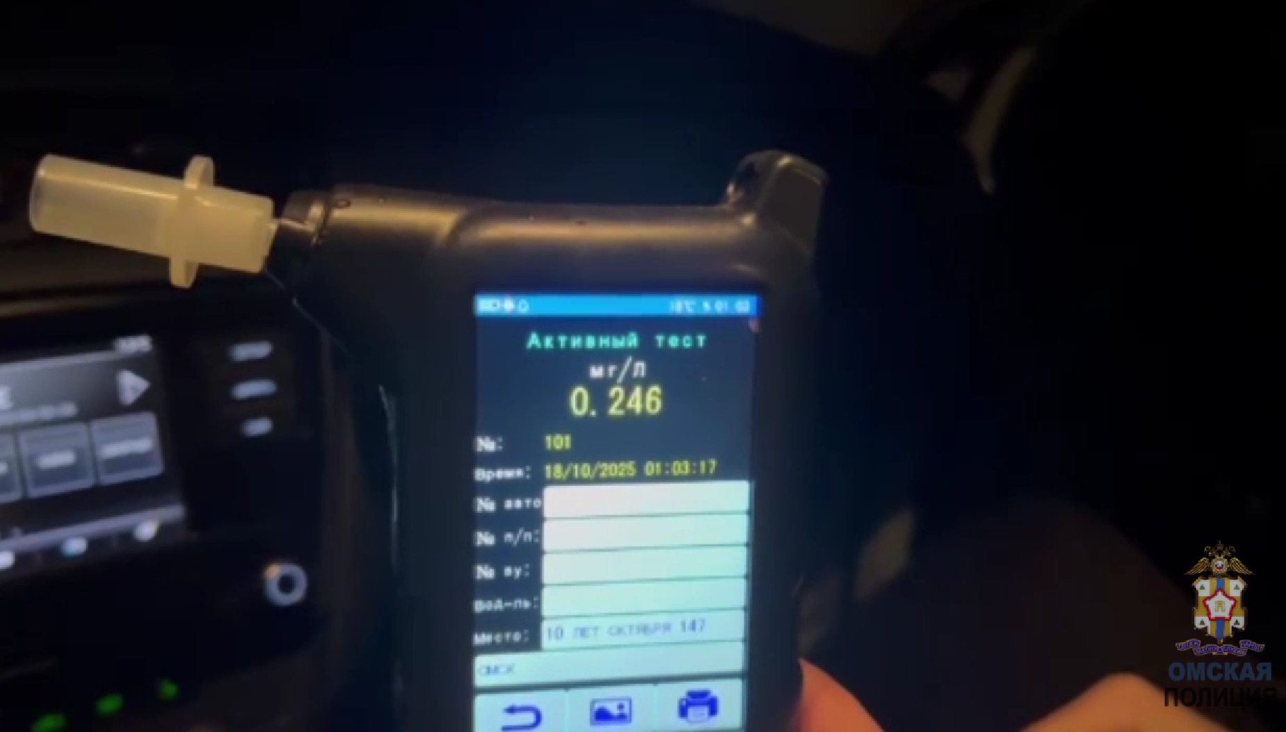 Автоинспекторы на видео показали результат алкотестера на концентрацию алкоголя в выдыхаемом воздухе при проверке задеражанного омича / Стоп-кадр с видео Госавтоинспекции Омской области