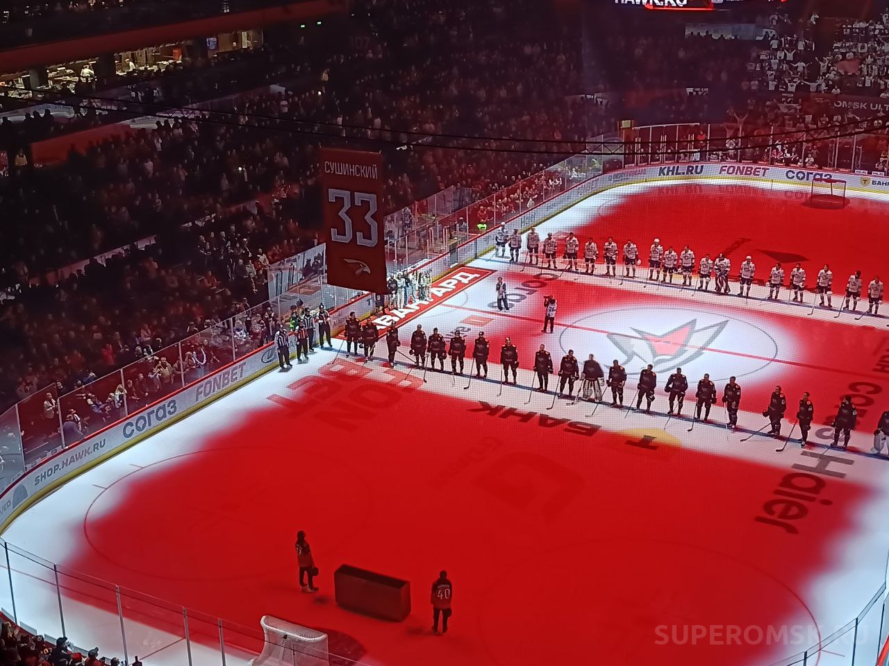 В понедельник, 27 октября 2025 года, перед матчем омского «Авангарда» с магнитогорским «Металлургом» был поднят новый стяг. Под сводами «Арены» теперь появилась фамилия легендарного хоккеиста «Авангарда» Максима Сушинского, которого болельщики назвали «Су-33».