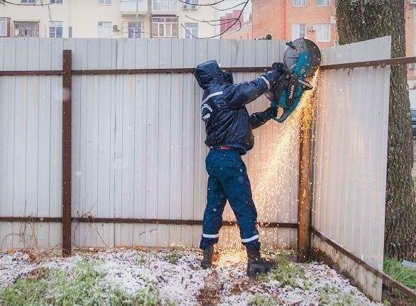 На фото: демонтаж металлического ограждения в Октябрьском районе г. Омска / Источник фото: Администрация города Омска