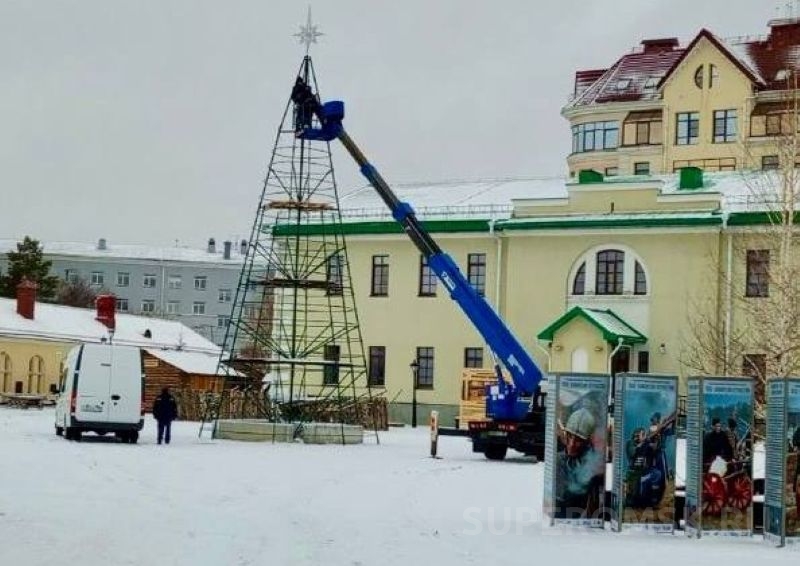 На фото: установка главной елки / Фото: мэрия Омска