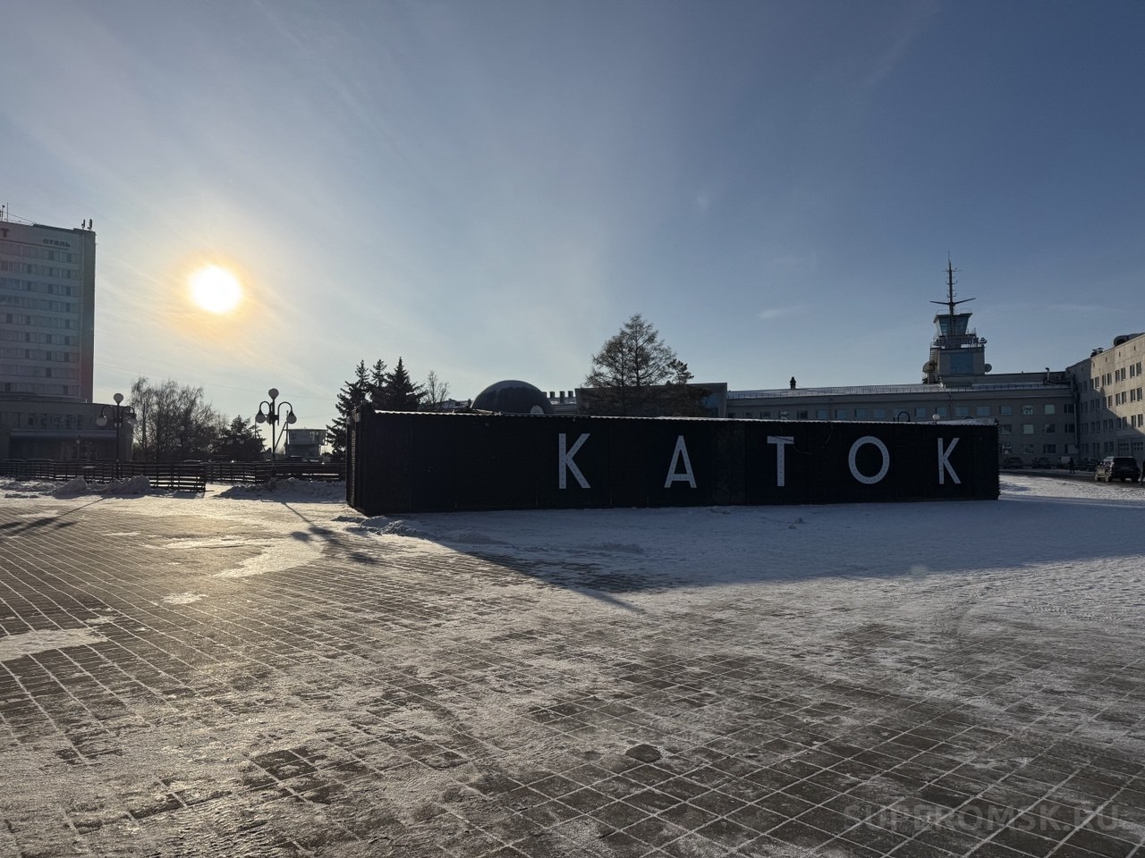 В центре Омска, на площади Бухгольца, началась активная подготовка к открытию зимнего катка. Как убедился СуперОмск», на месте уже установили ограждение вокруг знаменитого шара «Держава» и смонтировали теплый павильон для посетителей с крупной надписью «Каток», как видно на фото.