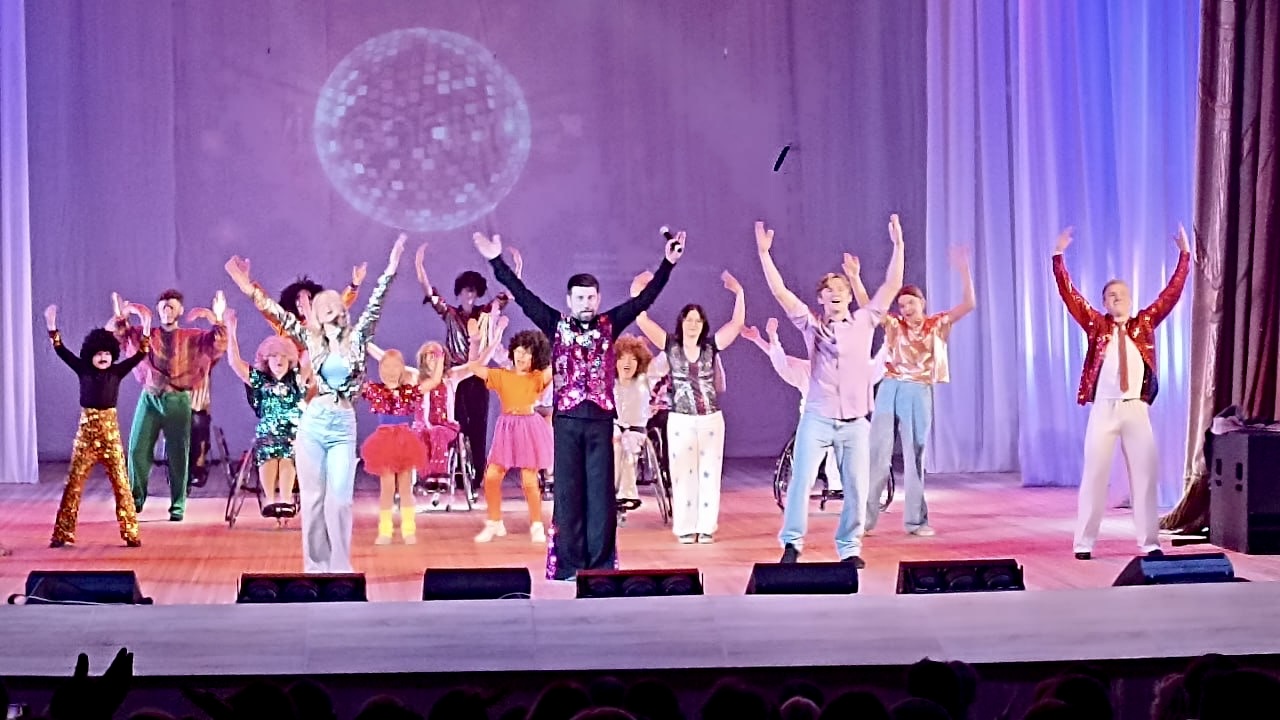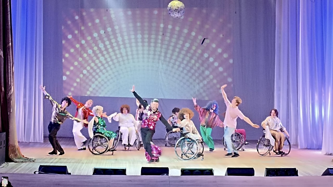 В Омске во Дворце культуры им. Малунцева с аншлагом прошла премьера инклюзивного спектакля проекта «Танцы без границ» «Каблучки, колеса, искры». Постановка посвящена целой эпохе – стилю «диско», который на один вечер объединил зрителей и танцоров.