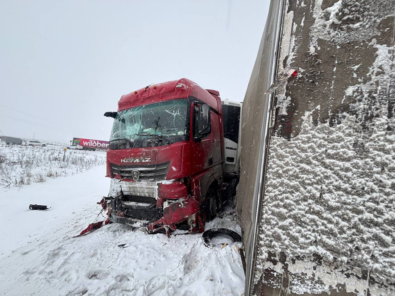 В УМВД России по Омской области опубликовали кадры с места страшного ДТП на трассе Тюмень – Омск, случившегося днем в субботу, 20 декабря 2025 года.