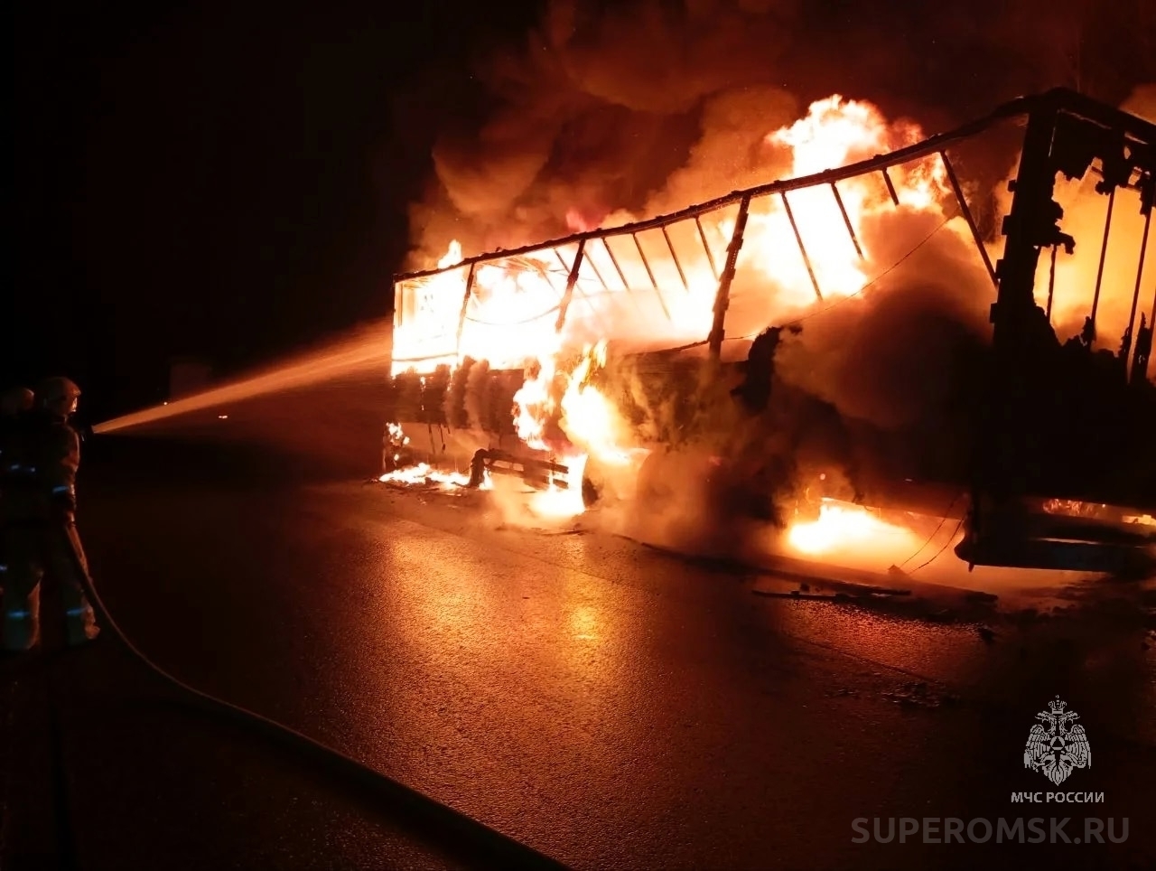 Фото: сгоревший большегруз / источник: ГУ МЧС по Омской области.