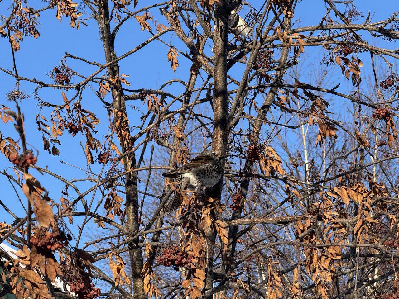 Судя по всему, дрозды-рябинники облюбовали деревья в Омске и теперь рассматривают агломерацию в качестве постоянной кормовой базы. Как обратил внимание корреспондент «СуперОмска», в начале января 2026 года эти прожорливые птицы вернулись в миллионник и ринулись оставлять после себя голые ветки. Редких для глаза горожанина пернатых можно встретить везде, где еще остались ягоды на ветках (на фото ниже).
