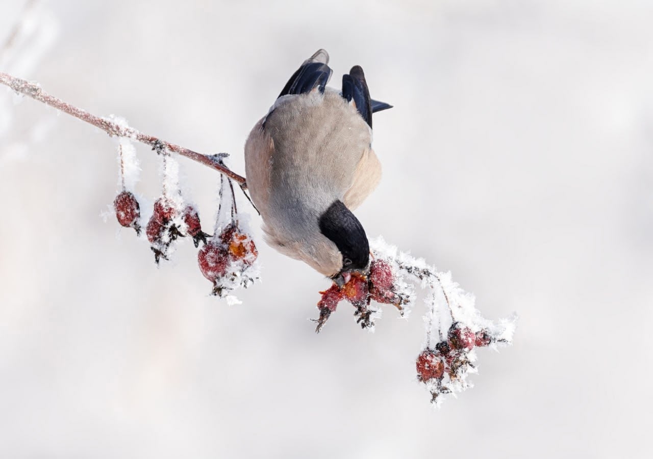 «Есть птица, чей образ стал для многих синонимом русской зимы, – снегирь. Его яркий самец с красной грудью – настоящая живая открытка на фоне белого снега. Однако сегодня наш герой – его верная спутница, самка снегиря, чья красота куда более скромна и изысканна.