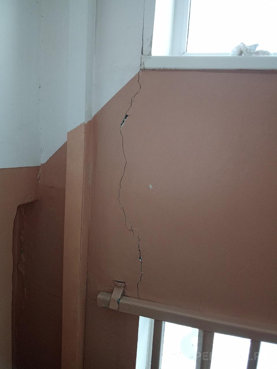 На фото: трещина в подъезде многоэтажки / https://vk.com/omsk_vk