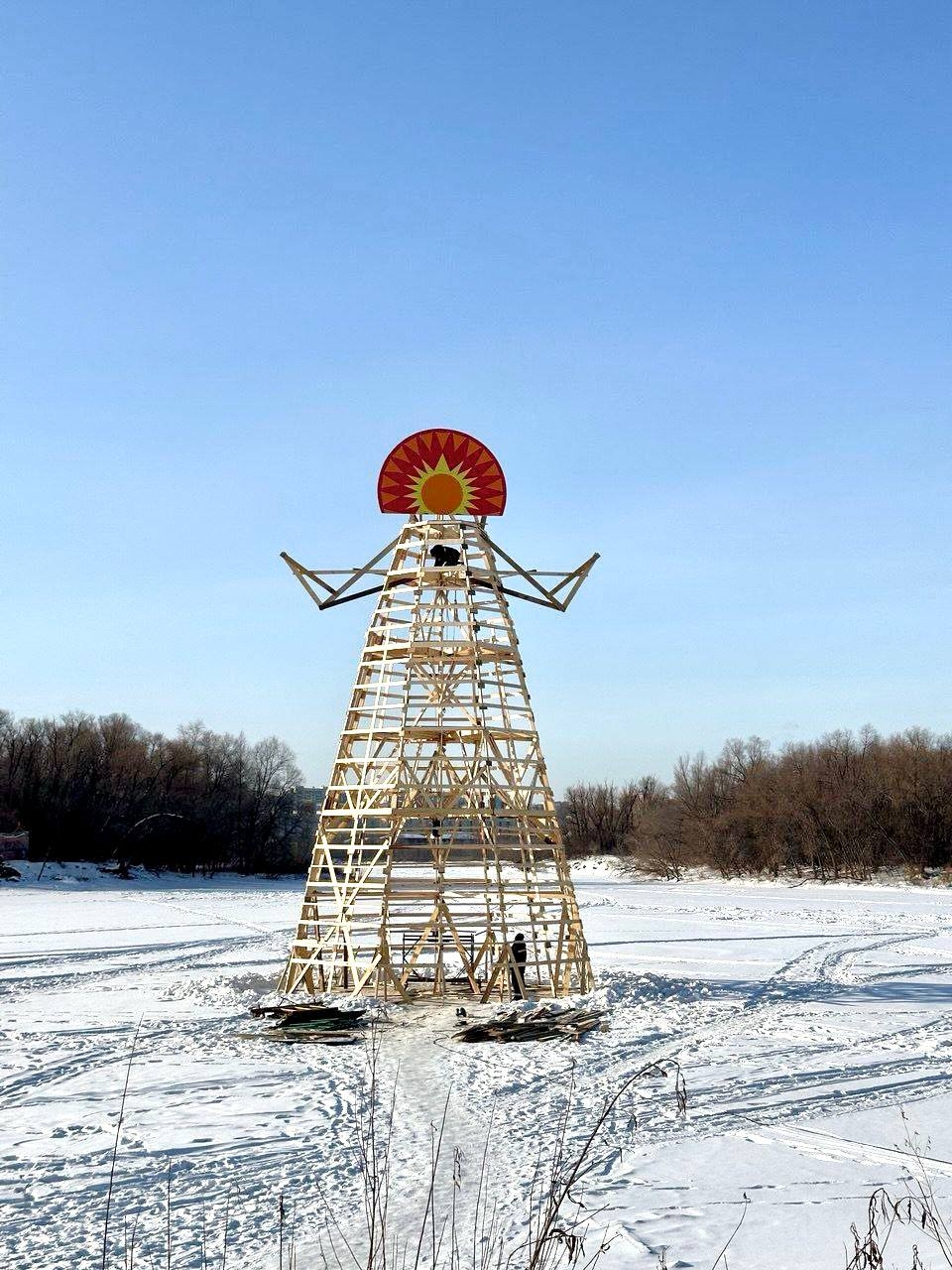 На фото: Масленица высотой 16 метров / Источник фото: пресс-служба городской зоны отдыха «Зеленый остров»