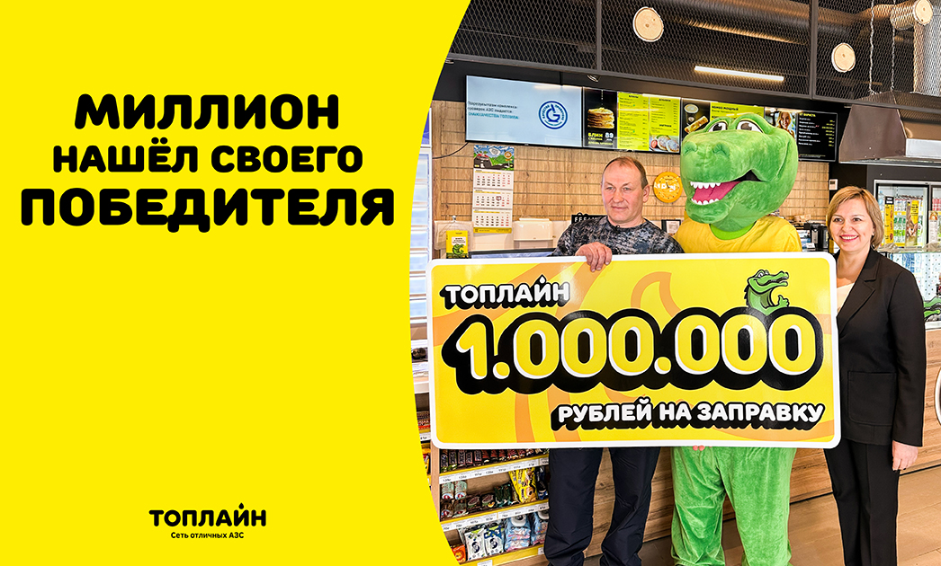 Житель города Тары Евгений Матузов стал победителем акции «Заправка на миллион» сети АЗС «Топлайн» и получил главный приз – 1 млн рублей, начисленный на бонусную карту.