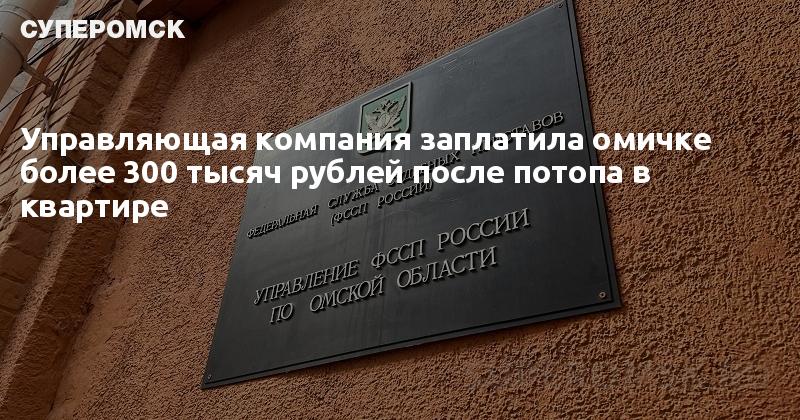 Управление Федеральной службы судебных приставов Омской области сообщает во вторник, 17 февраля 2026 года, о взыскании в пользу омички суммы материального ущерба в размере 365 тысяч рублей. Согласно иформации ведомства, причиной произошедшего затопления квартиры стало ненадлежащее исполнение обязанностей управляющей организацией.