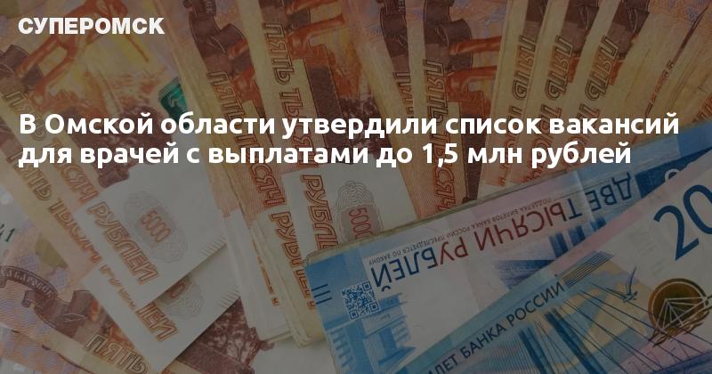 Документ, с которым ознакомился «СуперОмск», разделяет вакансии по размеру выплат. Самые крупные – 1,5 млн рублей – предусмотрены для врачей, готовых работать в центральных районных больницах. В списке – участковые терапевты и педиатры, хирурги, анестезиологи-реаниматологи, оториноларингологи, эндокринологи, неврологи, рентгенологи, стоматологи. Вакансии открыты в Азовской, Большереченской, Большеуковской, Знаменской, Колосовской, Любинской, Марьяновской, Муромцевской, Нижнеомской, Нововаршавской, Одесской, Оконешниковской, Павлоградской, Полтавской, Русско-Полянской, Саргатской, Таврической, Шербакульской районных больницах.