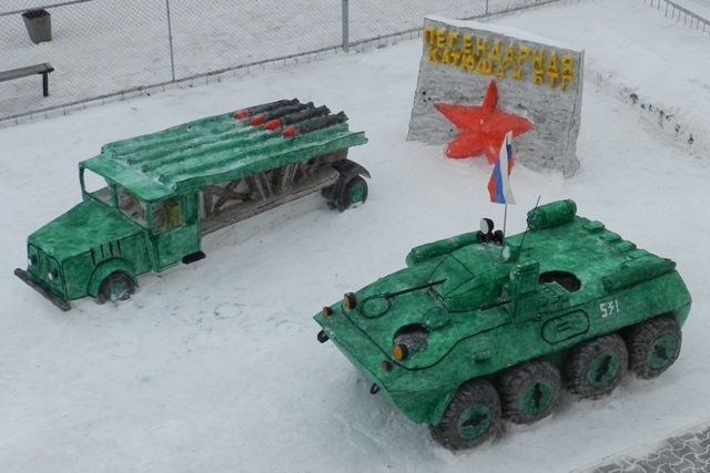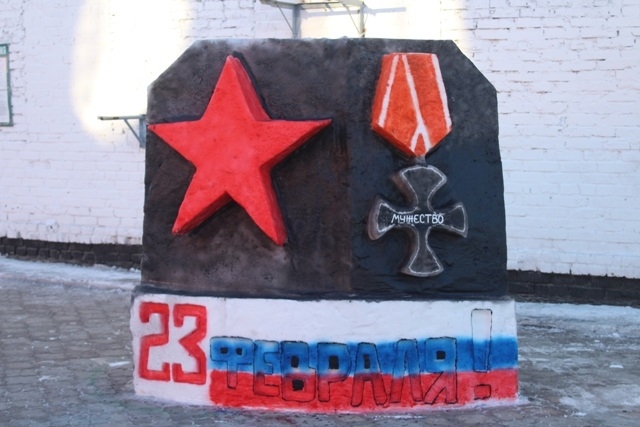 Главной задачей для осужденных омских колоний стало создание композиций изо льда и снега, воплощающих дух отваги, доблести и геройства и посвященных защите Отечества.